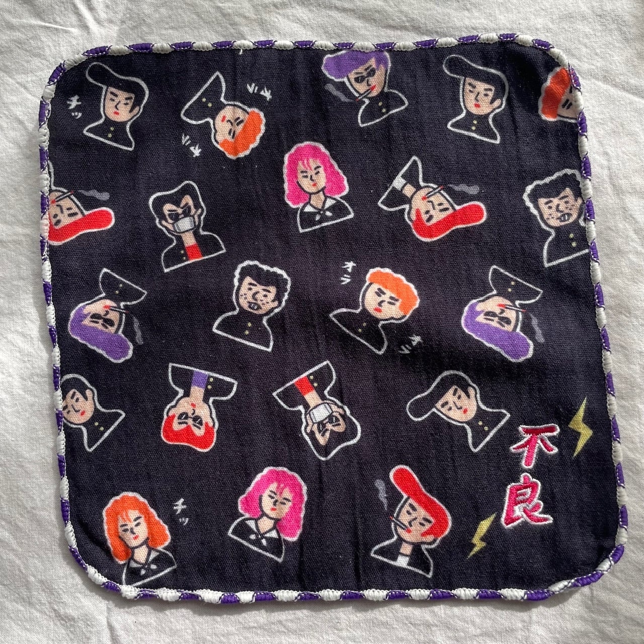 昭和世代の心に響く「不良」たちが描かれているハンカチ。