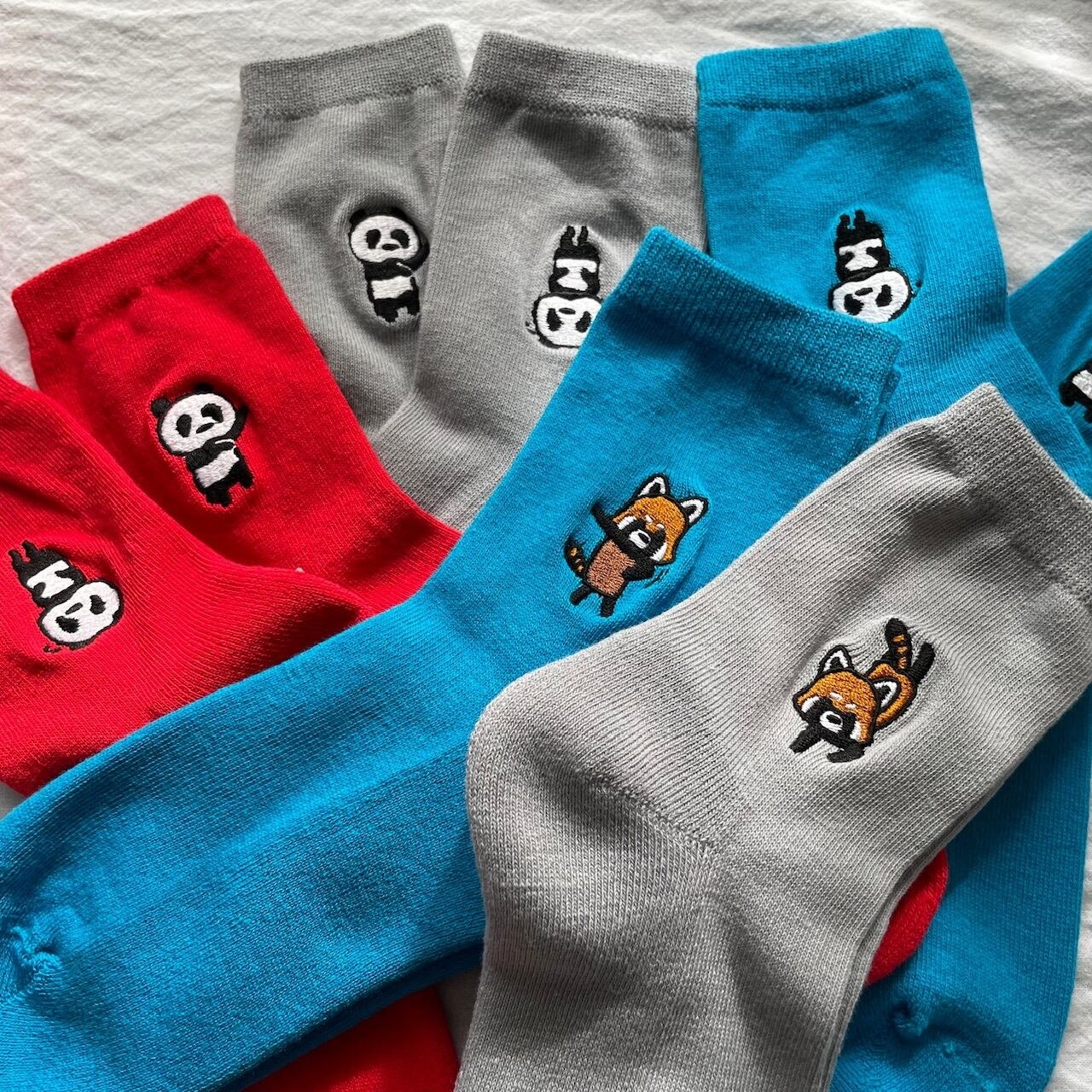踊るパンダちゃんとレッサーパンダちゃんが可愛いアシンメトリーな靴下も。
