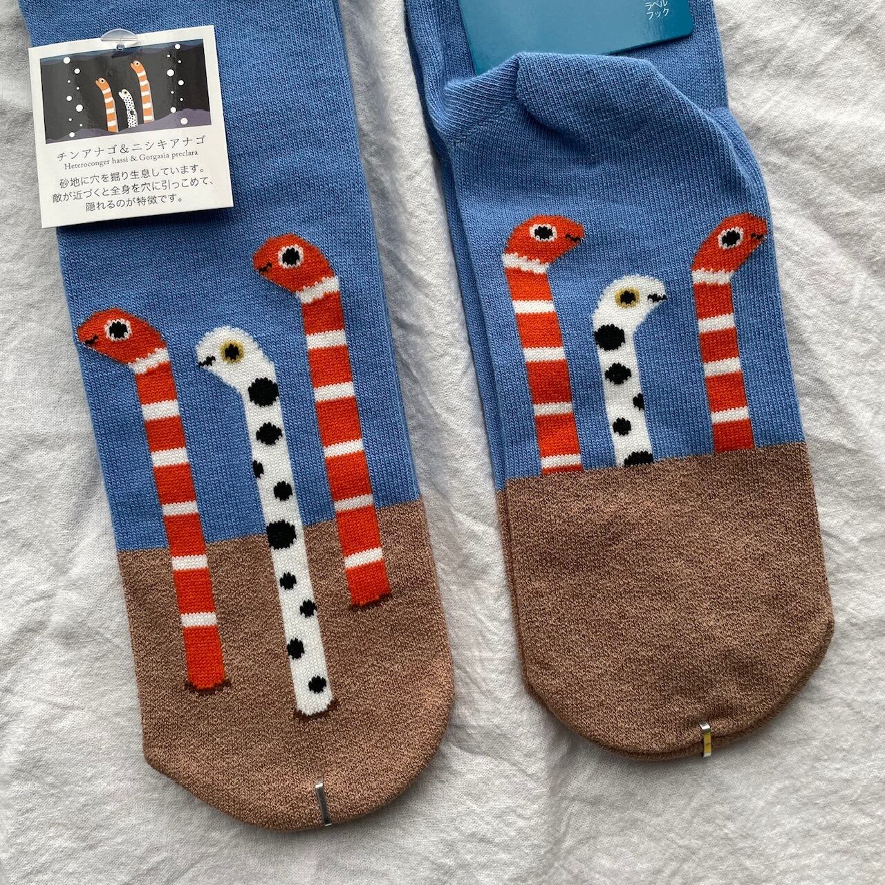 ただ見ているだけで癒されるチン&ニシキアナゴちゃん靴下。