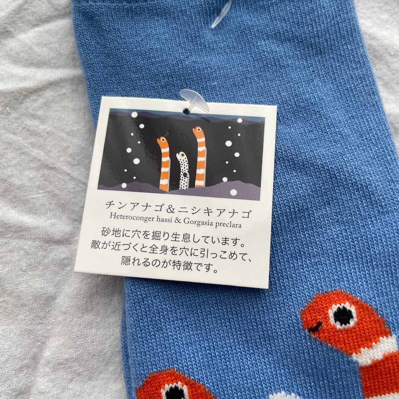 チンアナゴとニシキアナゴの靴下 海の生き物 チンアナゴ ニシキアナゴ ショートソックス 靴下 海の生き物