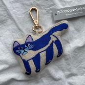ブルーの猫がお洒落な刺繍キーホルダー ミロコマチコ 猫 バッグチャーム 刺繍 ねこ プレゼント