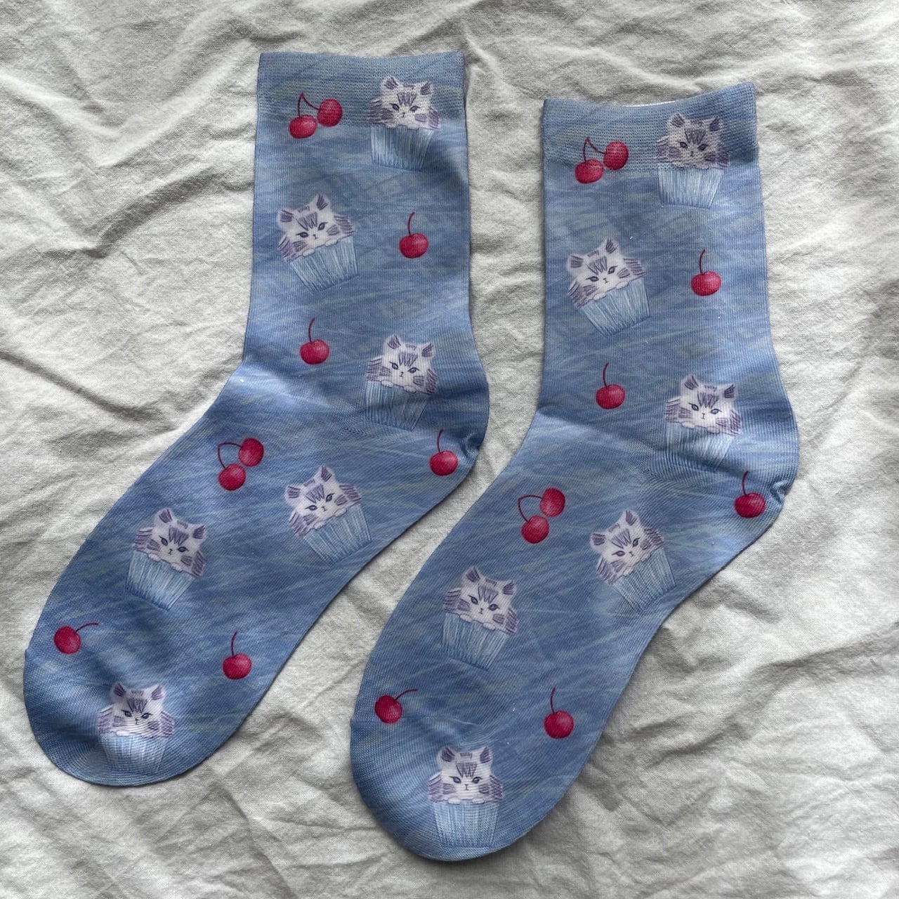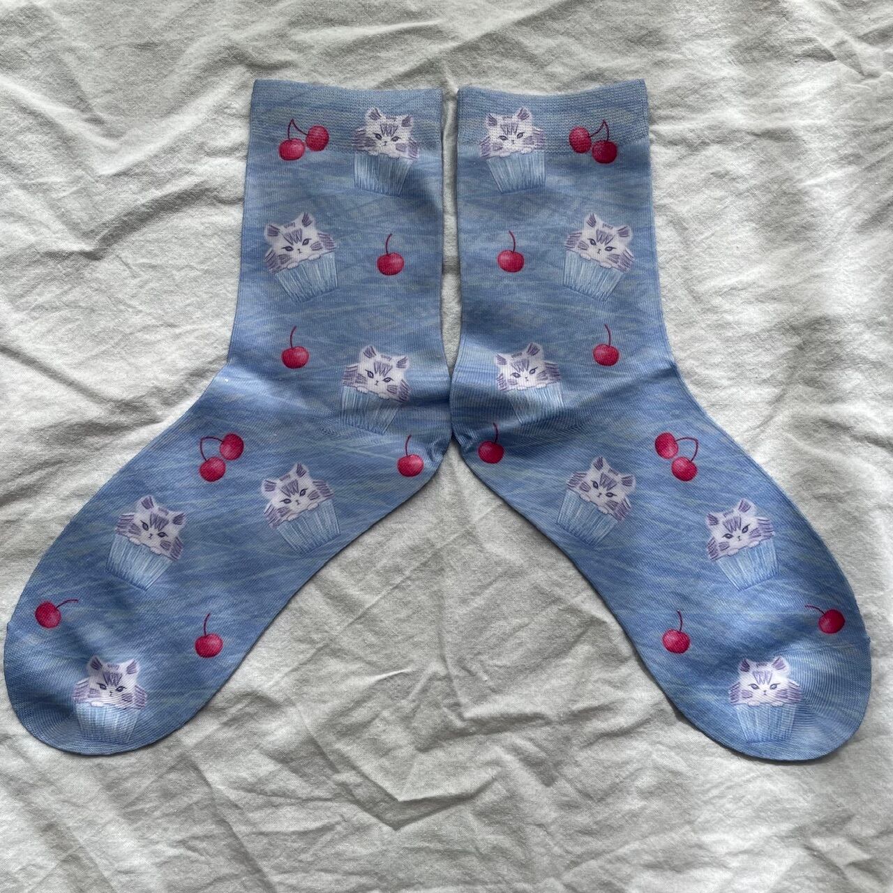 カップケーキの中にちょこんと入った、可愛らしい猫ちゃん柄の靴下をセレクトしました。