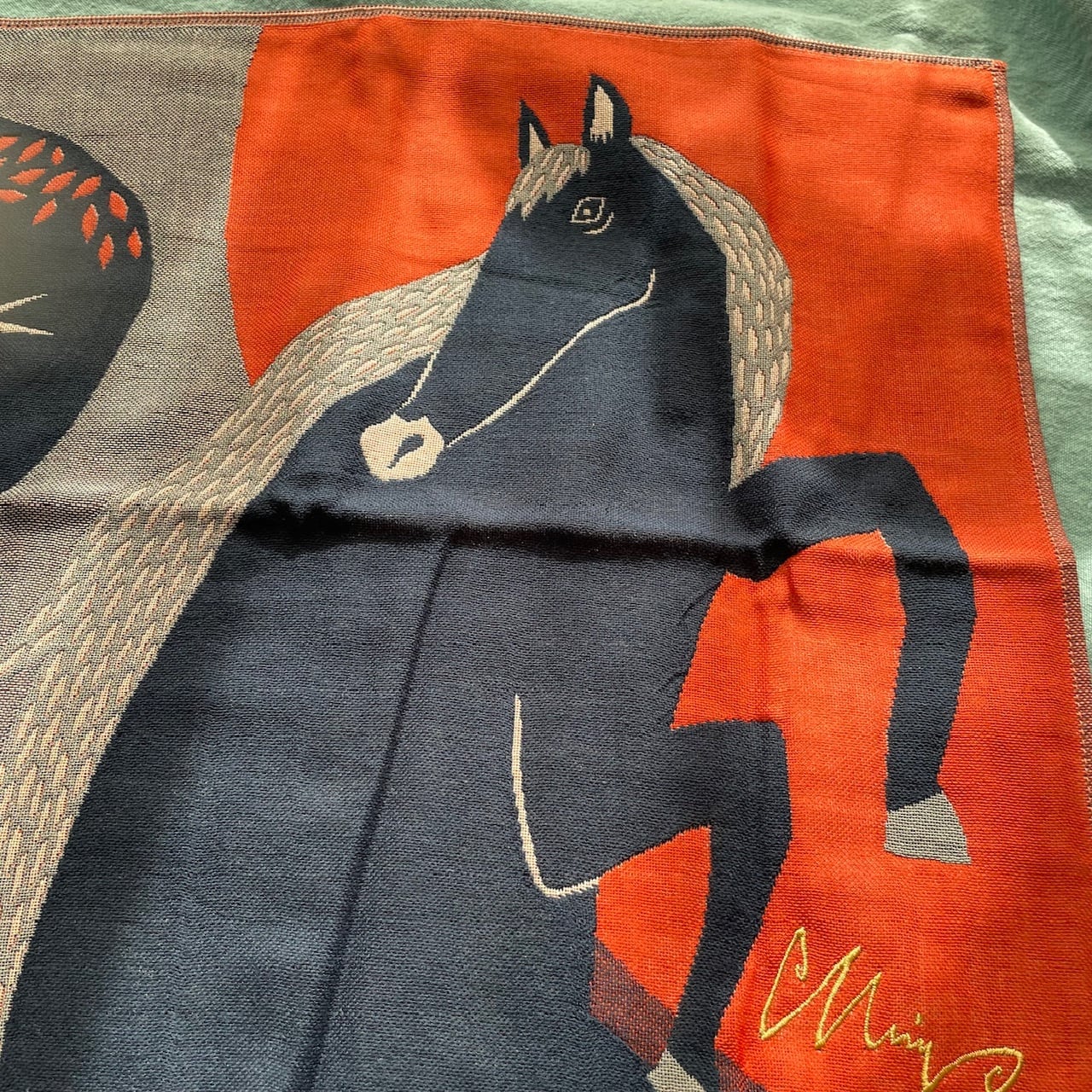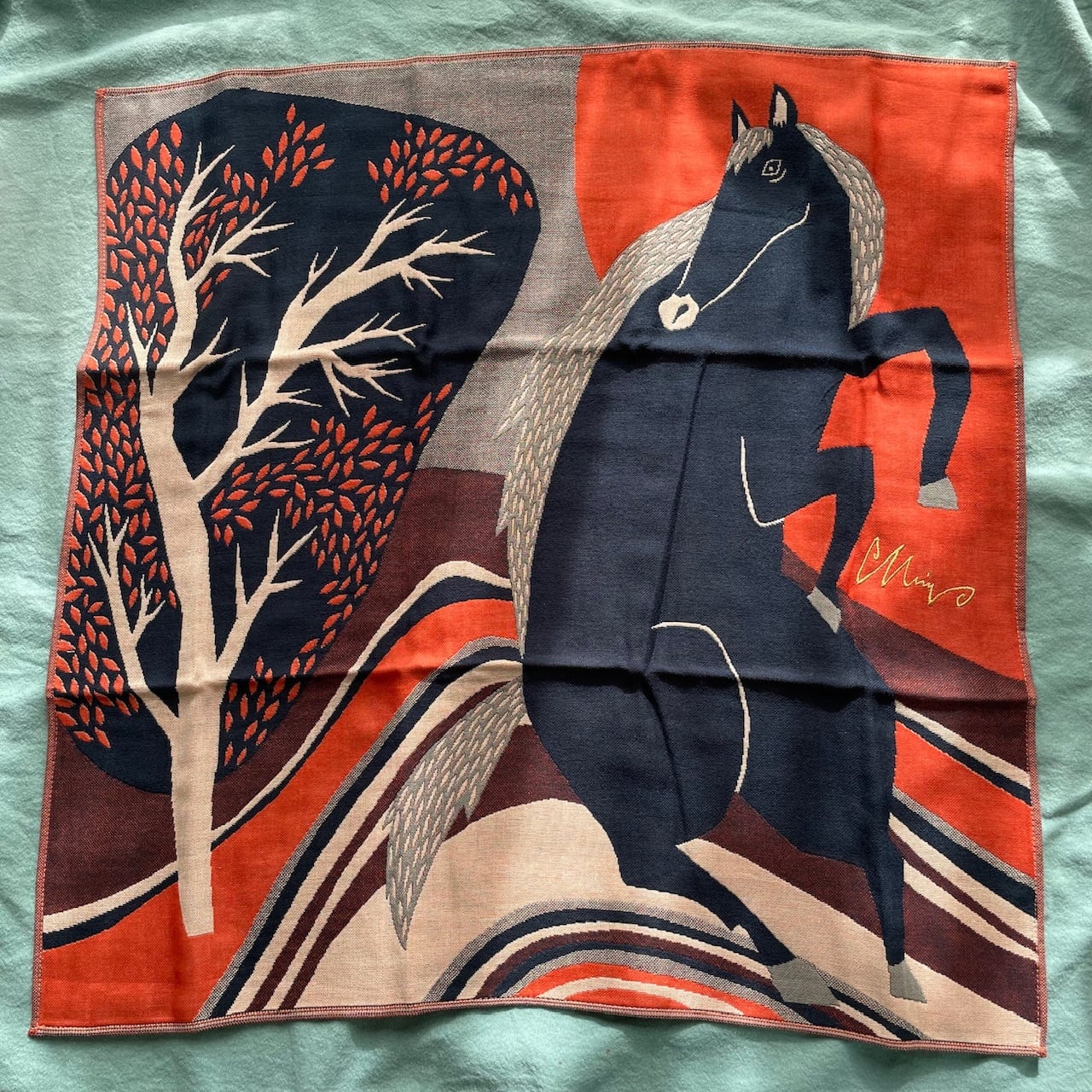 森田MiW マルチクロス 楠橋紋織 風を走るウマ 馬 スカーフ 膝掛け 大判ハンカチ ミニ風呂敷 4重ガーゼ 今治
