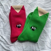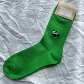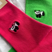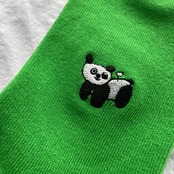 この靴下を履いてると元気になる!と言われるくらい明るいグリーンとピンクの癒しのパンダちゃん。