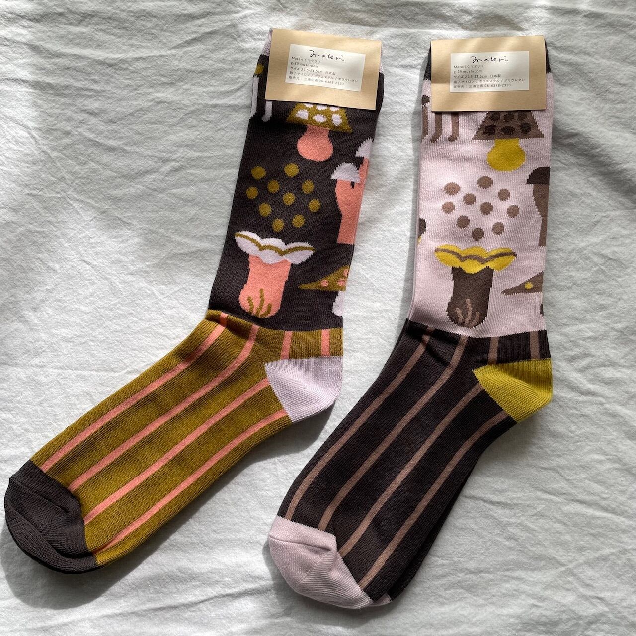 360度かわいいきのこの靴下 ますたにあやこ materi きのこ しめじ キノコ 秋 ソックス プレゼント