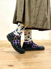 足元は土を思わせるお洒落な配色のチェック柄に仕上がっていて、履いた時に楽しくなるアイテムです。