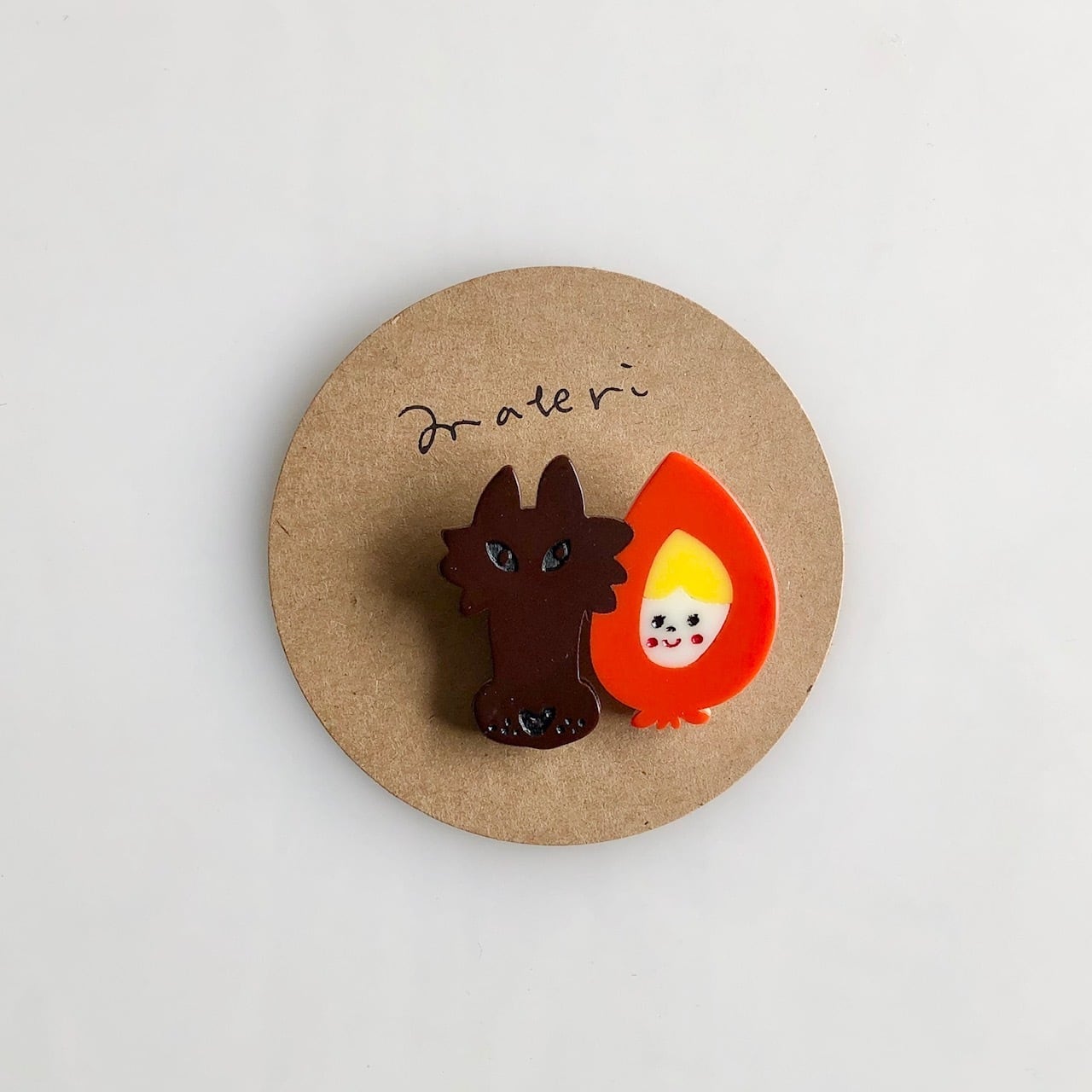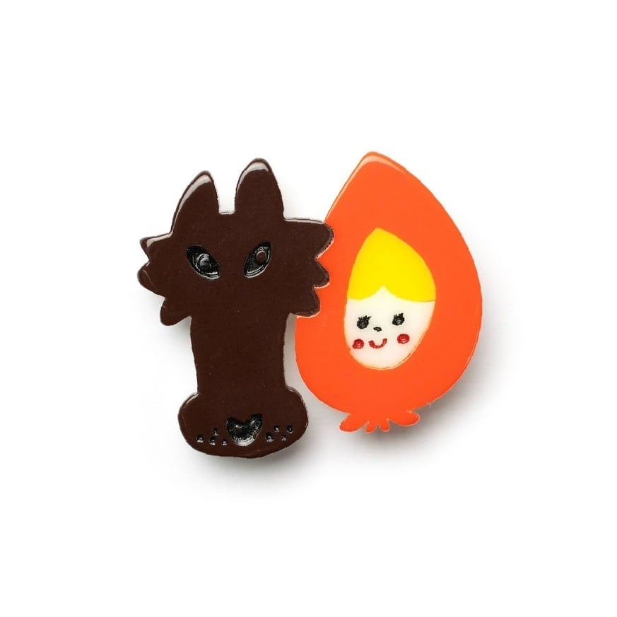 赤ずきんちゃんと狼みたいなアクリルブローチ ミズノマサミ ブローチ ストール プレゼント