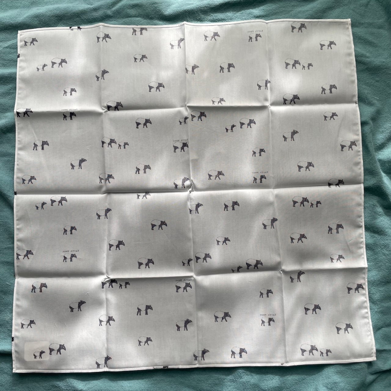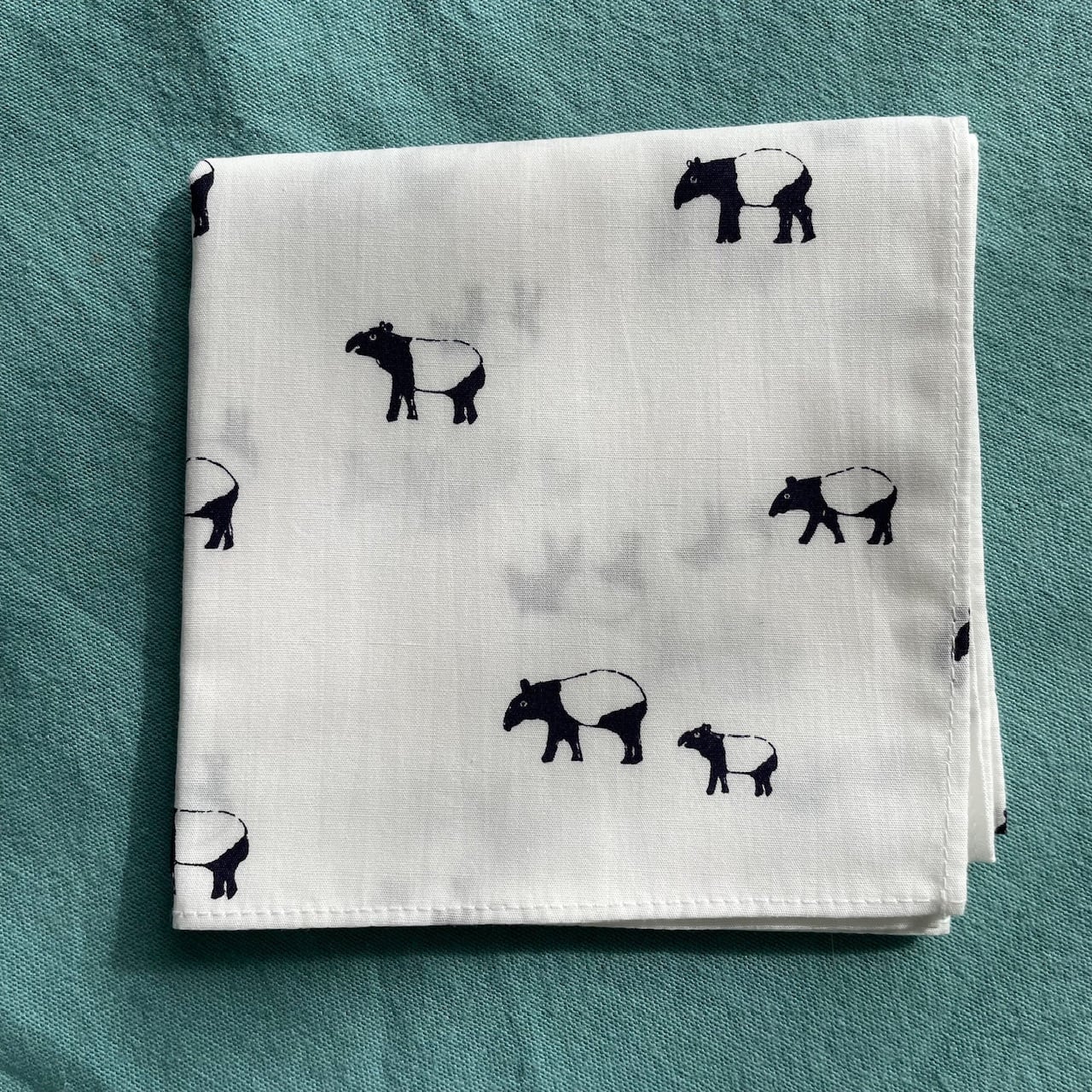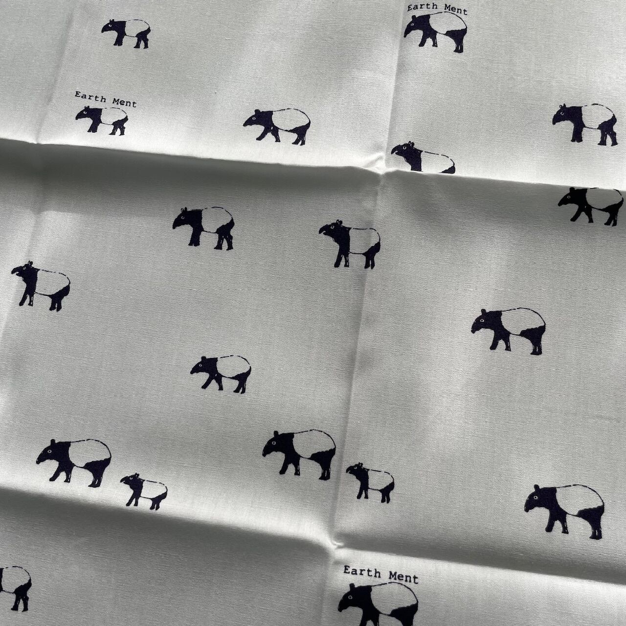 バク柄のハンカチ 綿100% 50ブロード Earth Ment 動物 獏 バク親子 夢を食べる動物 プレゼントにも