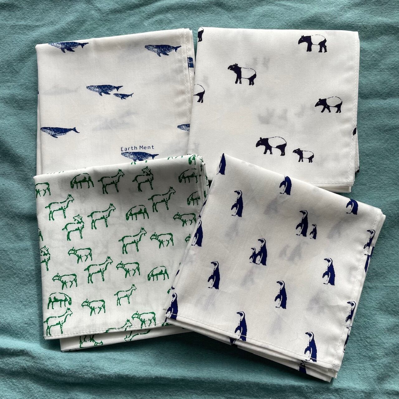 ペンギン柄のハンカチ 綿100% 50ブロード Earth Ment 動物 ペンギン ペンギン親子 プレゼントにも