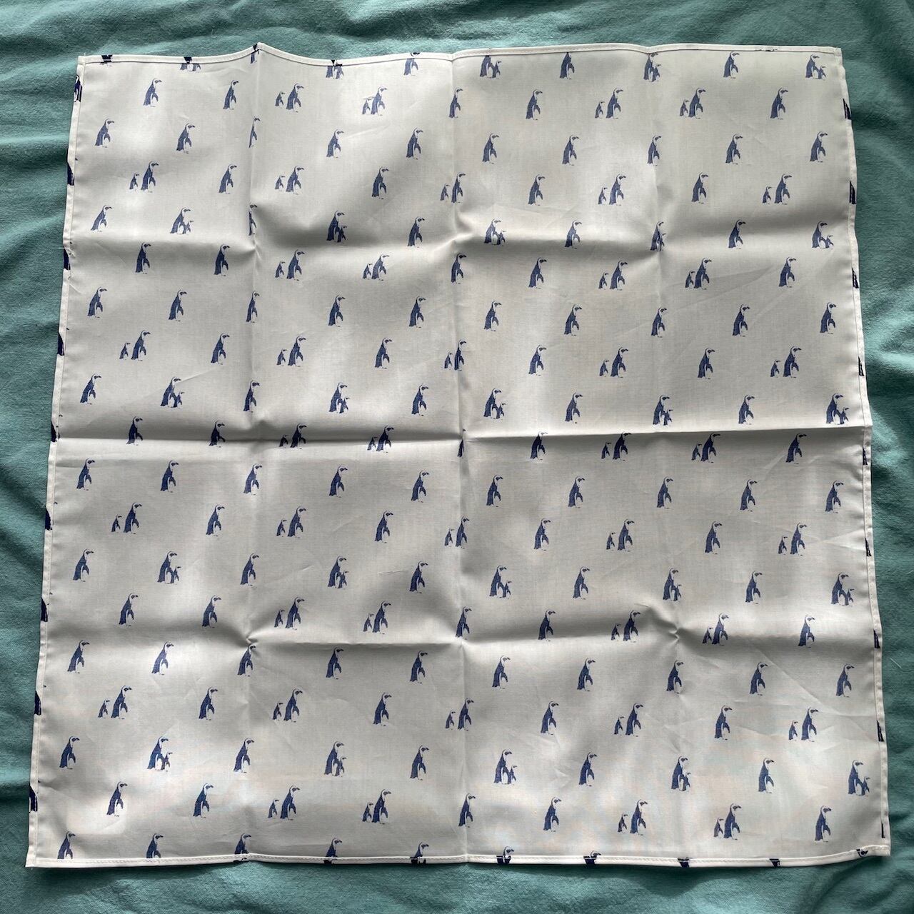 濃い青が南極をイメージさせてくれるような(?)ペンギン柄の大判ハンカチ。