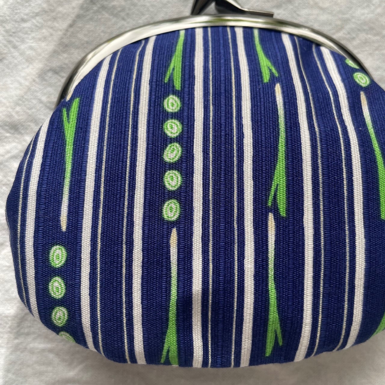 とてもお洒落なネギストライプ模様のがま口をセレクトしました。