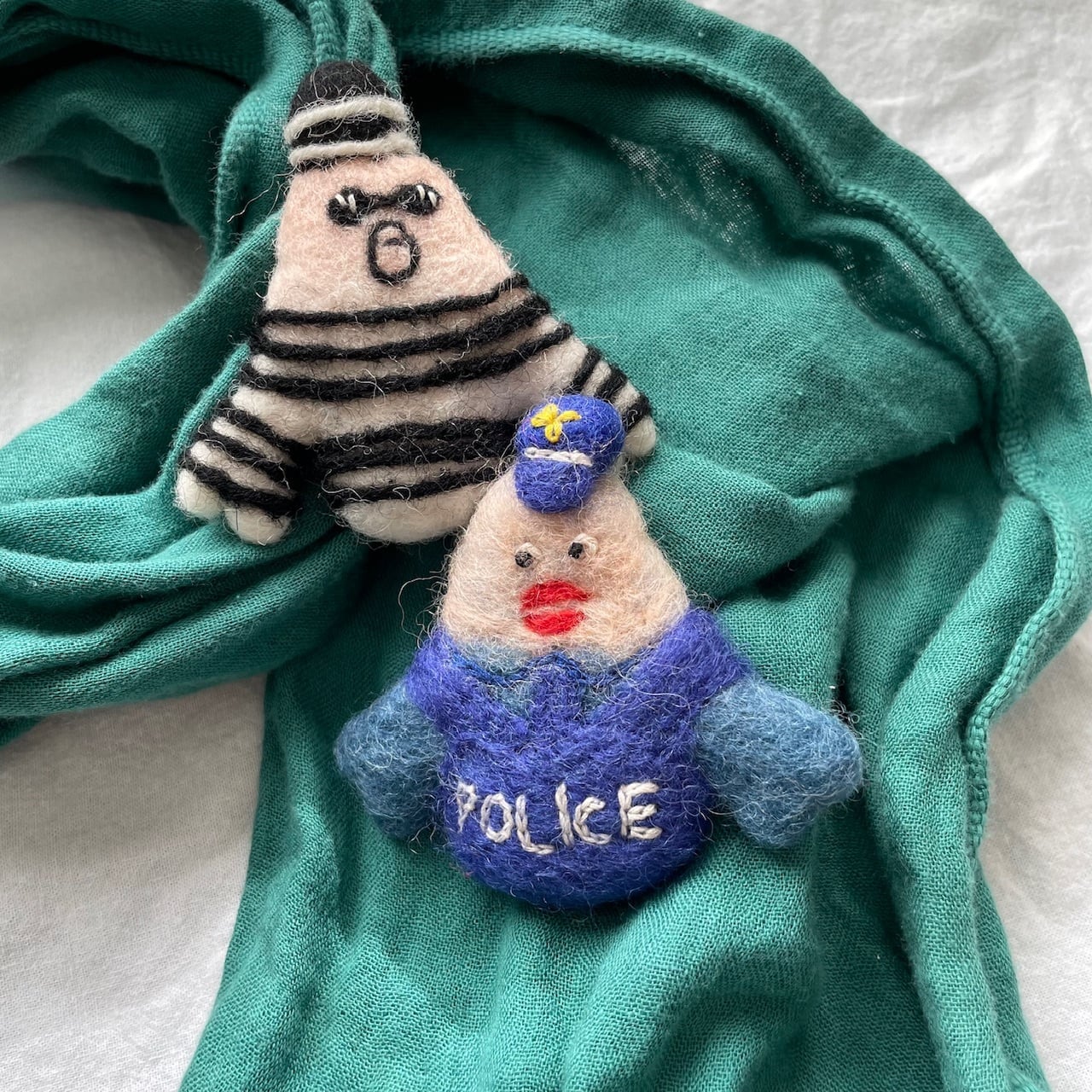 モノトーン風のボーダーとひよこちゃんみたいなポリスさん。