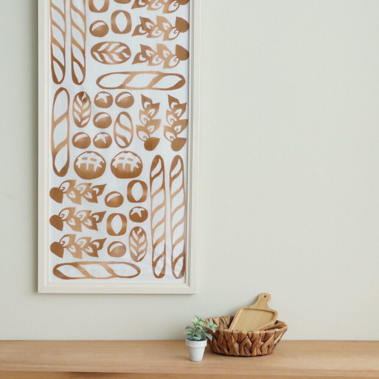 食欲の秋をテーマに美味しそうな沢山のパンが描かれた手ぬぐいをセレクトしました。