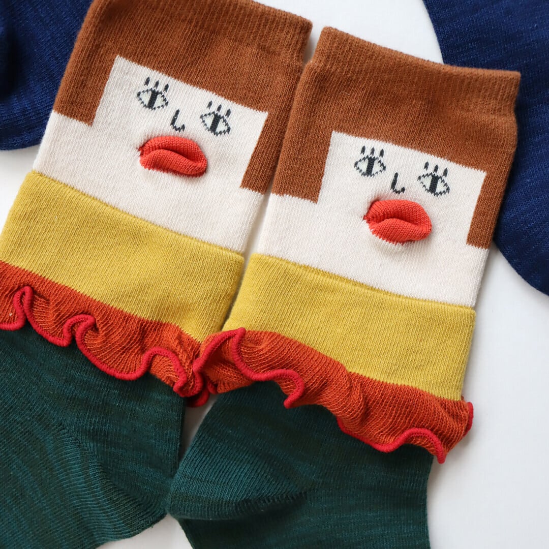 2足セット KIVISDOU 秋色のマチルダとイザベラ 可愛い靴下 面白柄 フリル プレゼント