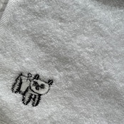 ちょうど良いサイズの今治タオルのハンカチに、ミズノマサミさんの人気アイコン「Panda toy」を刺繍しました。