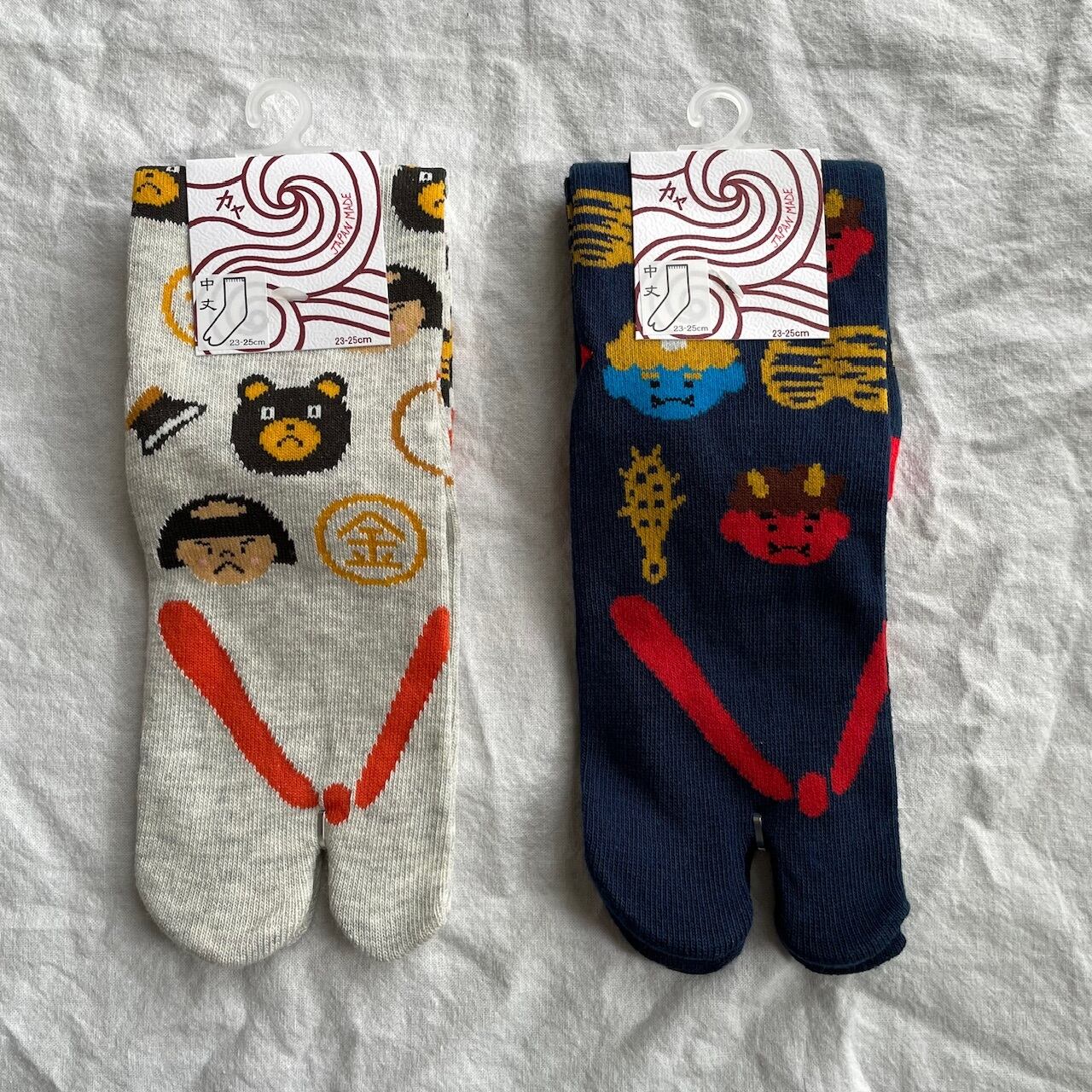 日本昔ばなし 鬼と金棒 金太郎 靴下 鬼 足袋型 鼻緒足袋型くつ下 ソックス レディース 鬼 赤鬼青鬼 金太郎 プレゼント 節分 日本