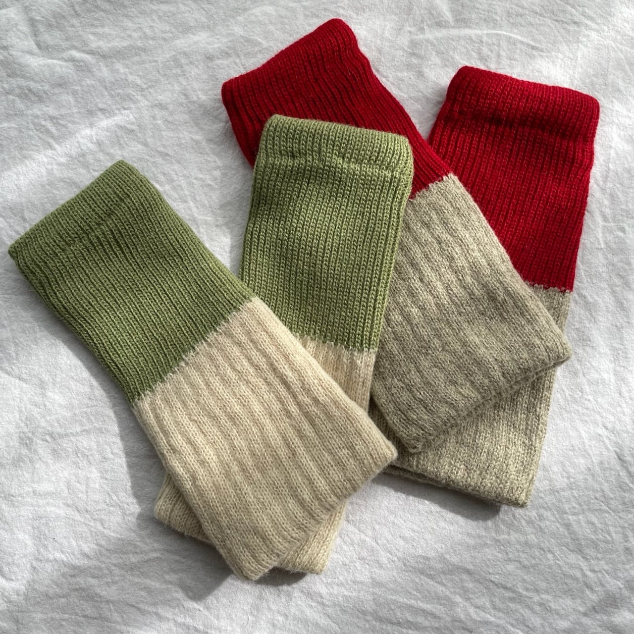 バイカラーがお洒落なやわらかウールのアンゴラアーム&レッグウォーマー 内側シルク 温活 冷え対策 冬小物 クリスマスプレゼント