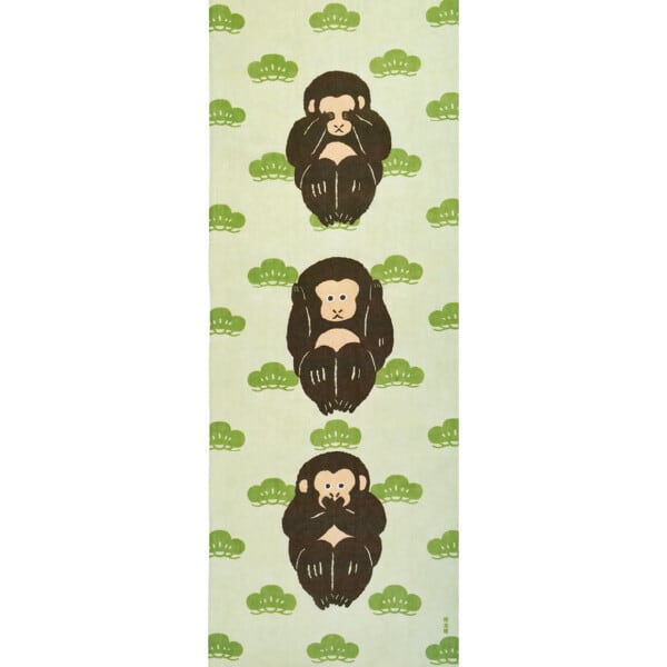 濱文様 おもしろてぬぐい 三さる 三猿 「見ざる言わざる聞かざる」 猿 サル 松 手ぬぐい タペストリー 日本製 プレゼント