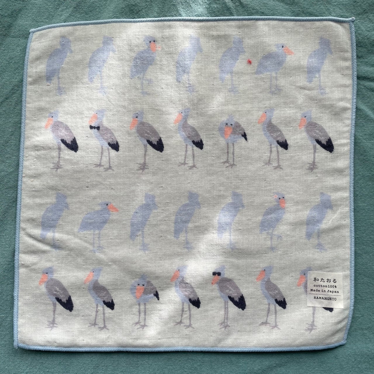 程よい厚みと丈夫さ、可愛らしいデザインがハシビロコウ好きさんだけでなく、ハンカチ好きさんにもおすすめの1枚です。