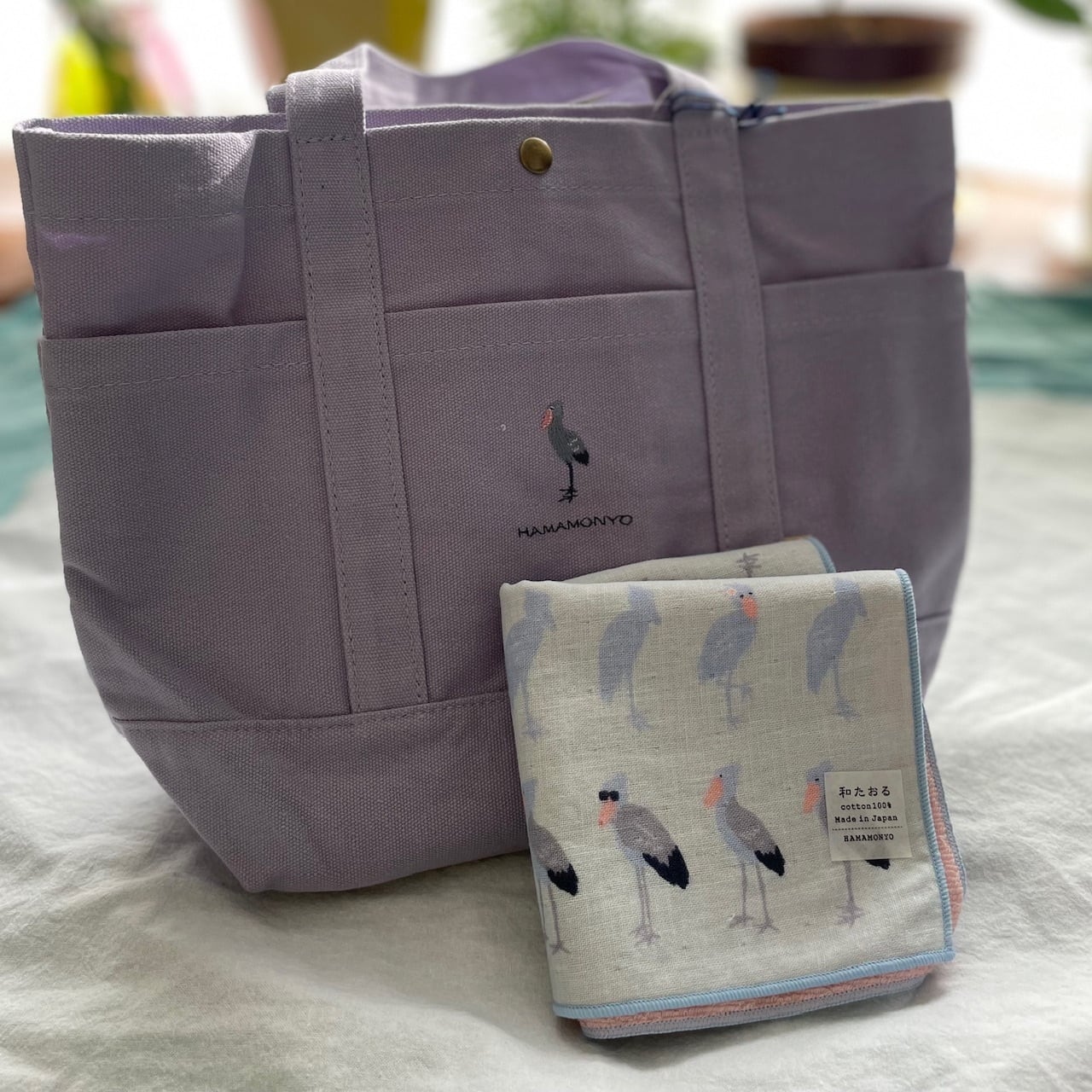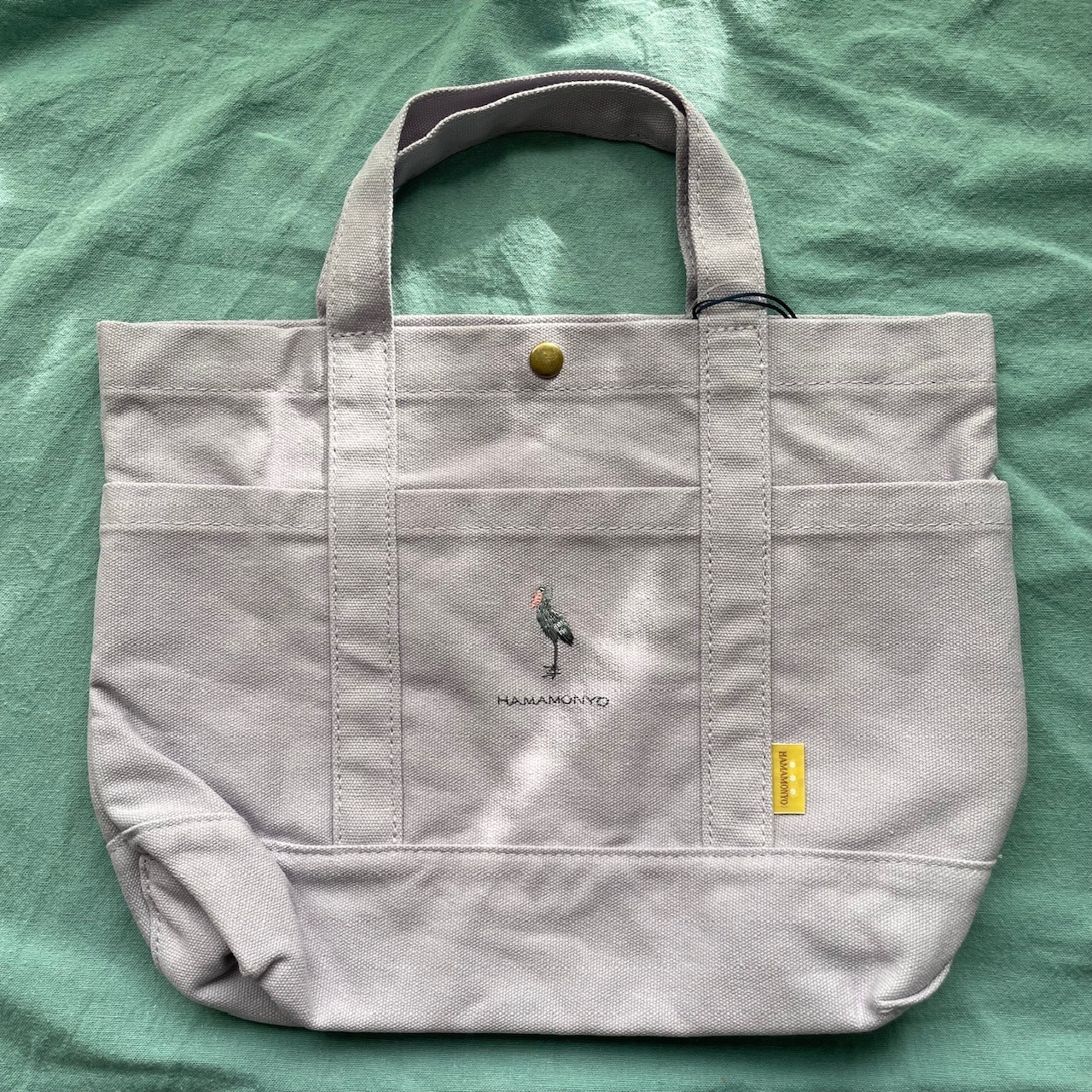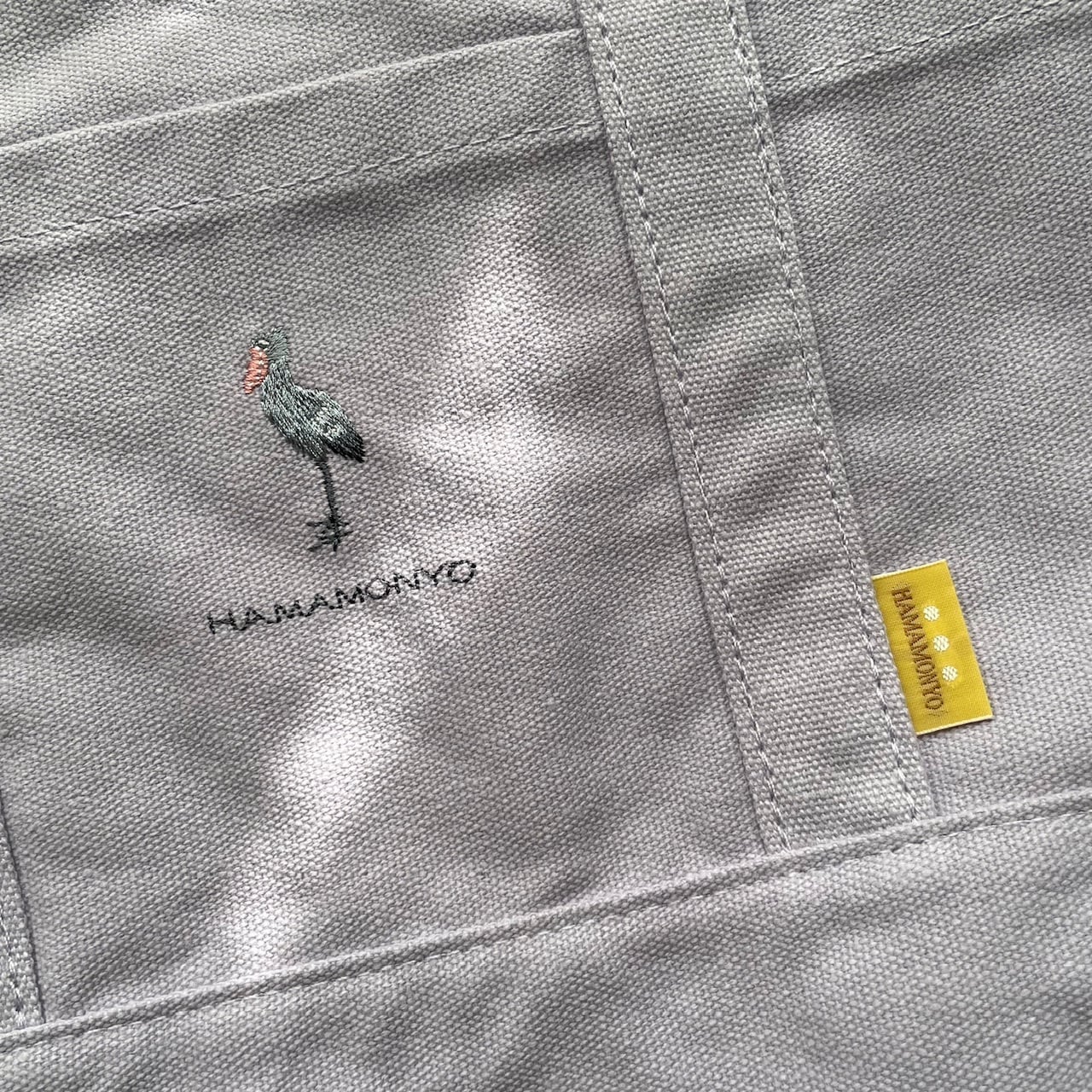 ワンポイントの刺繍がかわいいハシビロコウトート 濱文様 帆布 ランチバッグ ランチトート ミニトート 帆布
