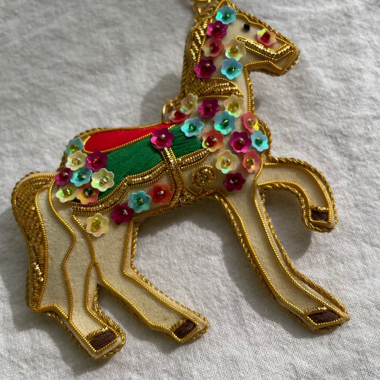 きらきらスパンコールが可愛いお馬さんのキーホルダー ザリ刺繍 馬 オーナメント クリスマス インド バッグチャーム 午年 プレゼント