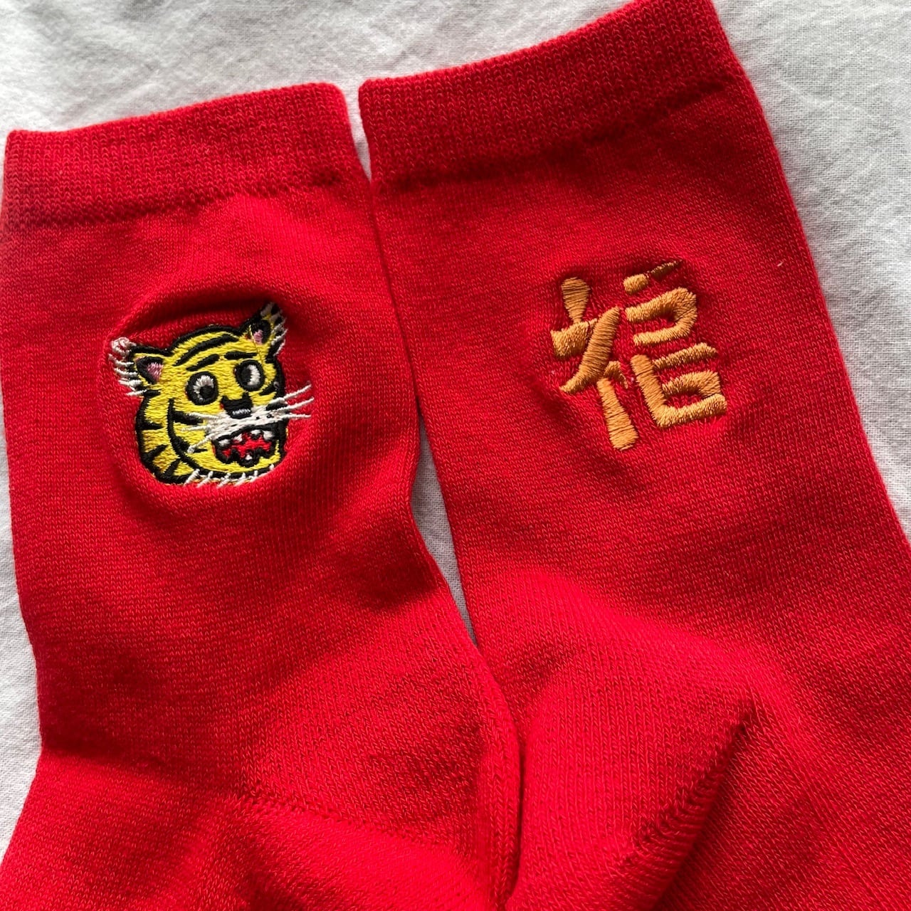 足底ふんわりネゴソックス ネゴシックス 福 虎 刺繍 トラ 寅 お正月 プレゼント 赤青グレー靴下
