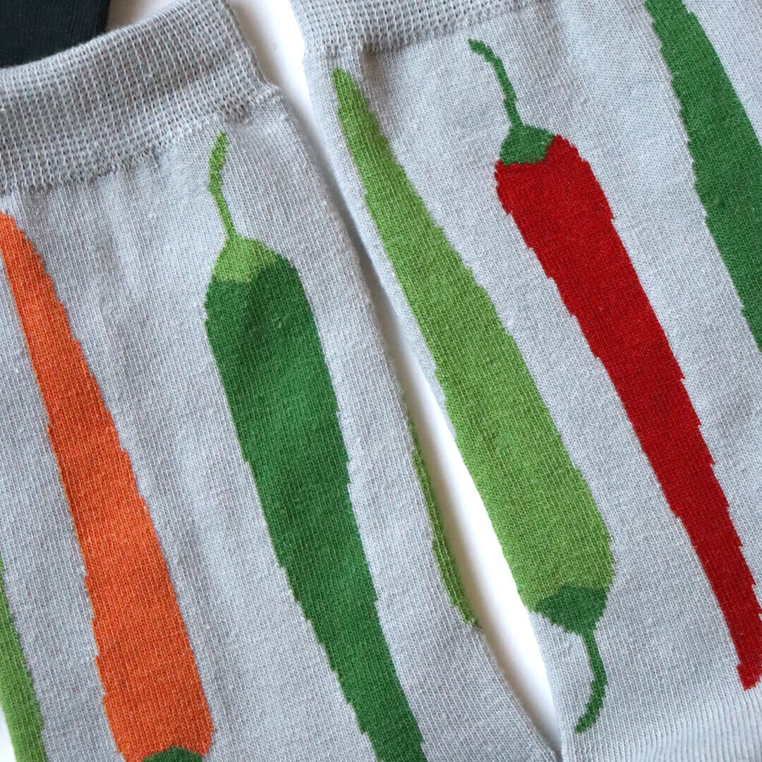 きびす堂さんのお野菜モチーフコレクションから、パッと見て目を惹くラディッシュ柄とおしゃれなトウガラシ柄の2足セットをセレクトしました。