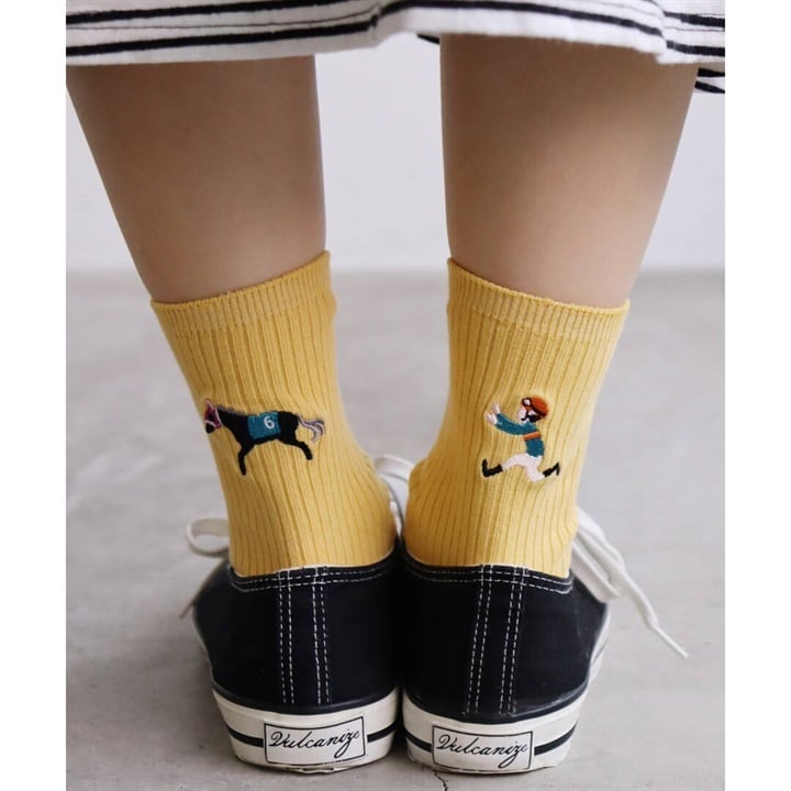 2足セット KIVISDOU 「置いて行かれてるやん」刺繍ショートソックス 刺繍 靴下 ショート丈 スニーカー プレゼント 馬 ジョッキー 午年 干支
