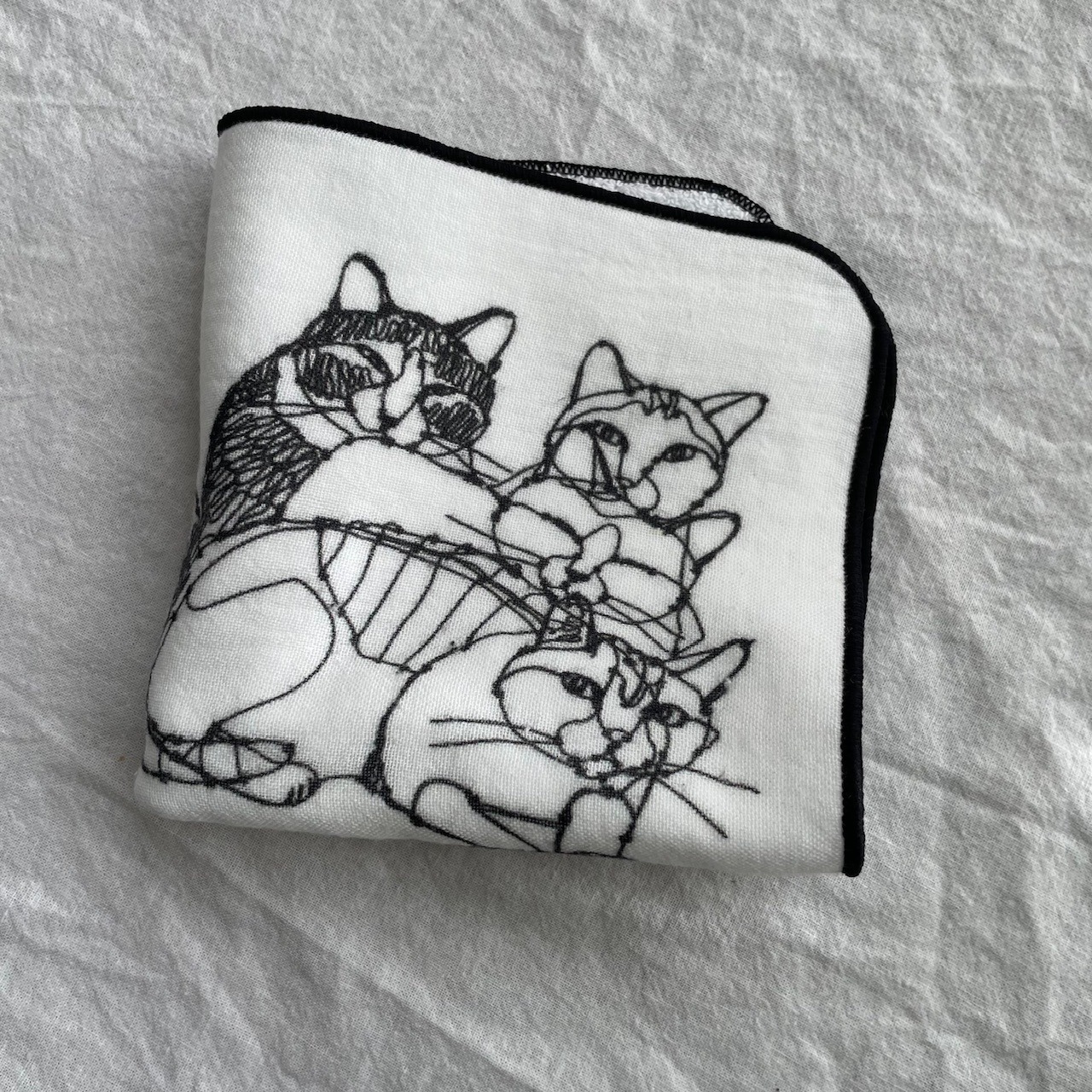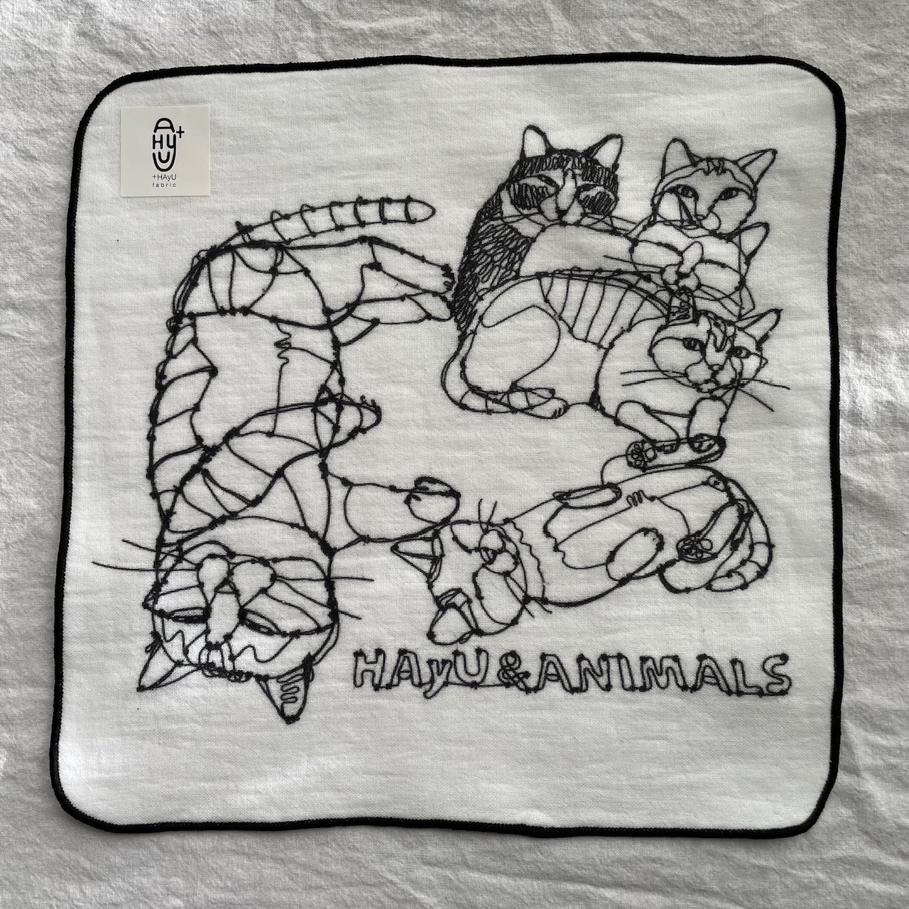 HAyU 猫 ハンカチ ガーゼタオルハンカチ ワイヤーアート お洒落 プレゼント モノトーン 猫柄