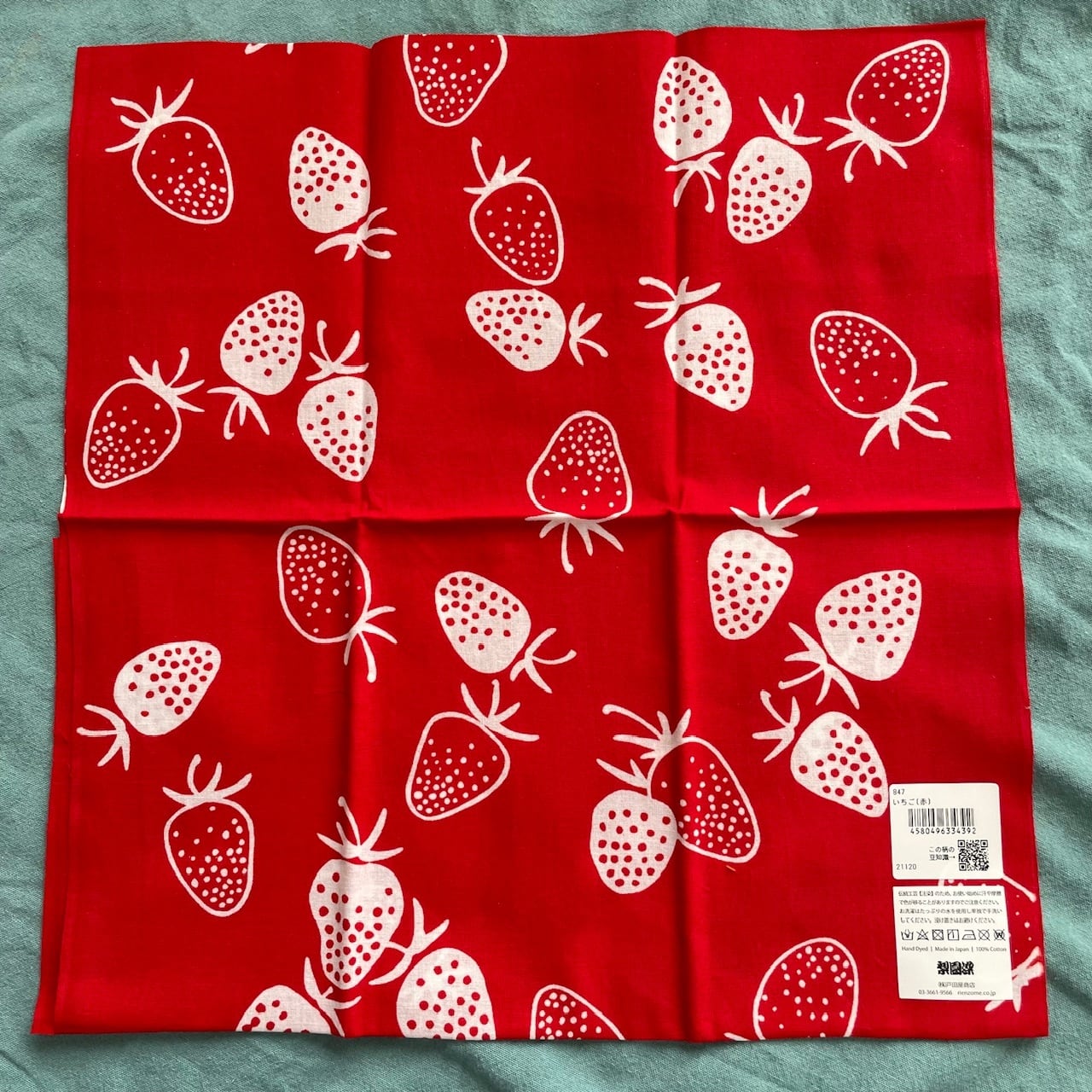 いちご柄 手ぬぐい 戸田商店 梨園染 いちご 手拭 てぬぐい タペストリー お弁当包み 苺 イチゴ プレゼント