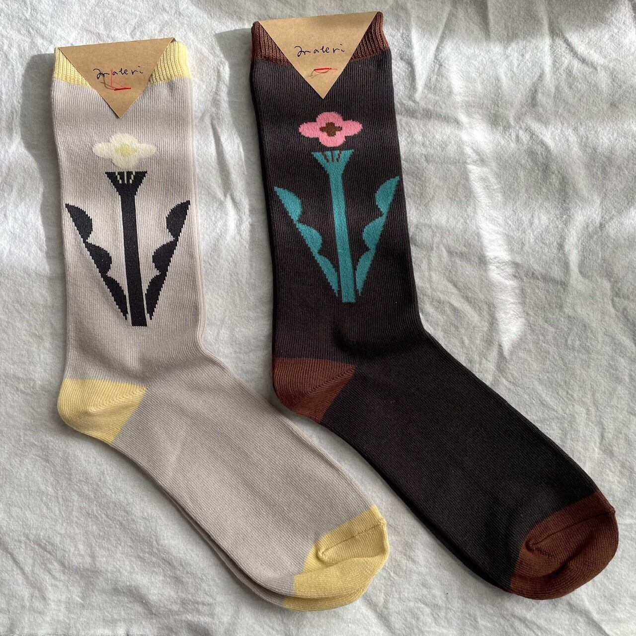 モノトーンがおしゃれなフラワーソックス ますたにあやこ materi 花 可愛い 靴下 プレゼント アシンメトリー ソックス