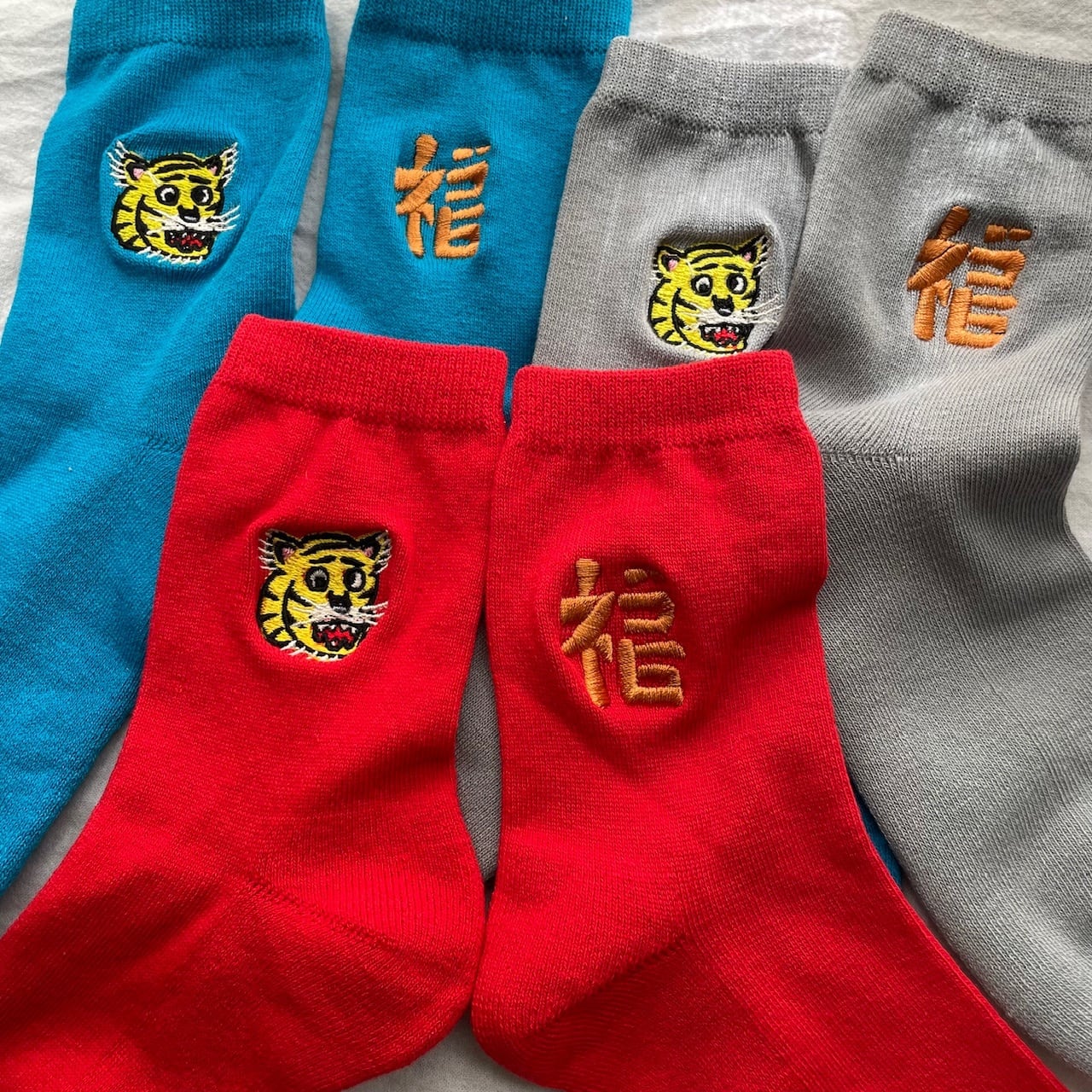 おめでたいモチーフの靴下は、虎好きさんへのギフトにもおススメですし、還暦祝いなどにも!