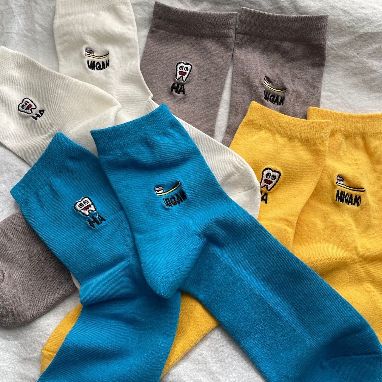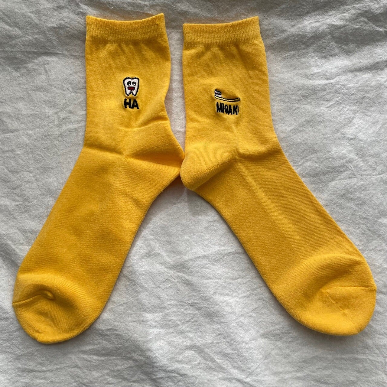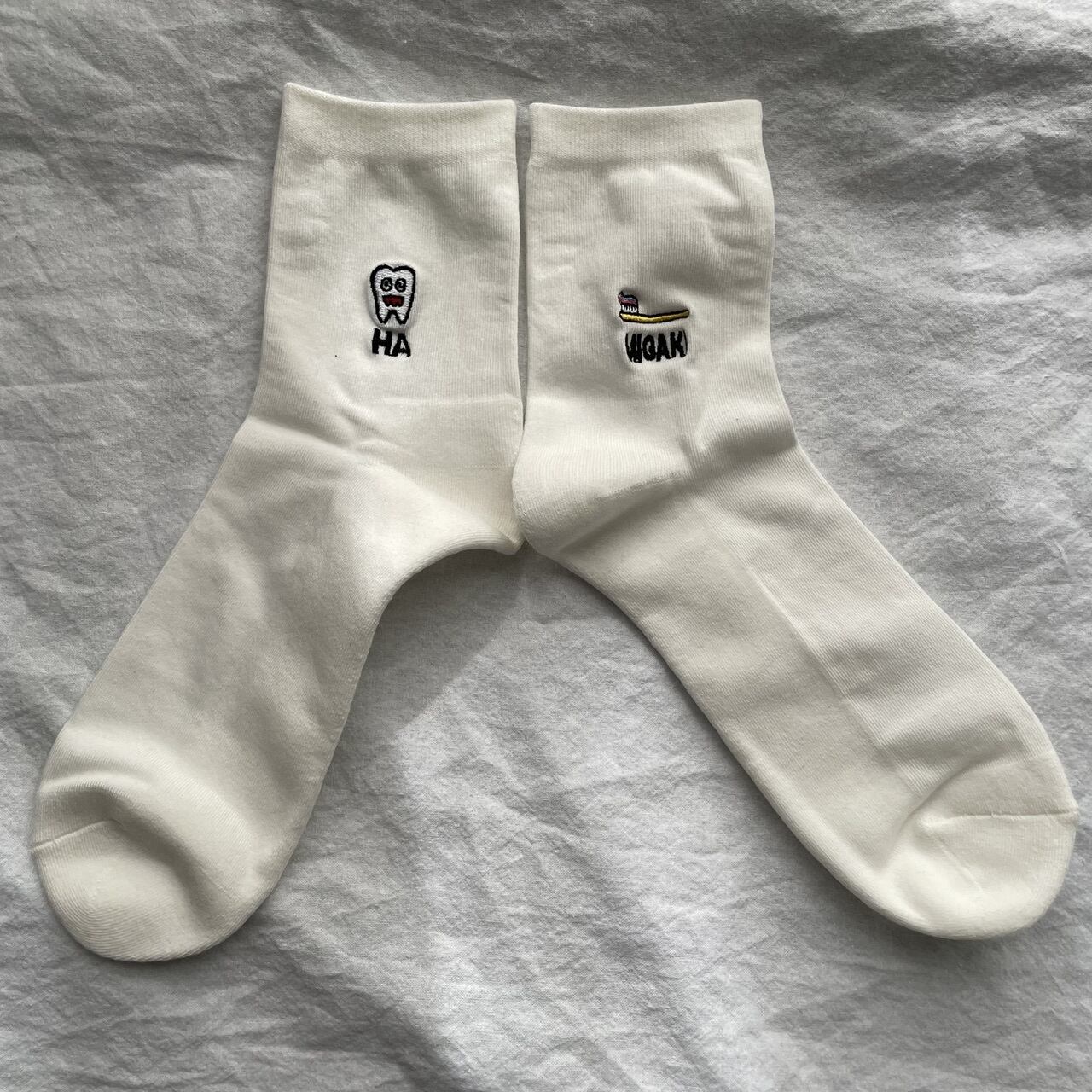 「歯」のモチーフって中々ないなと思いつつ、おもしろ顔の「歯」と「MIGAKI」と書かれたブラシ。