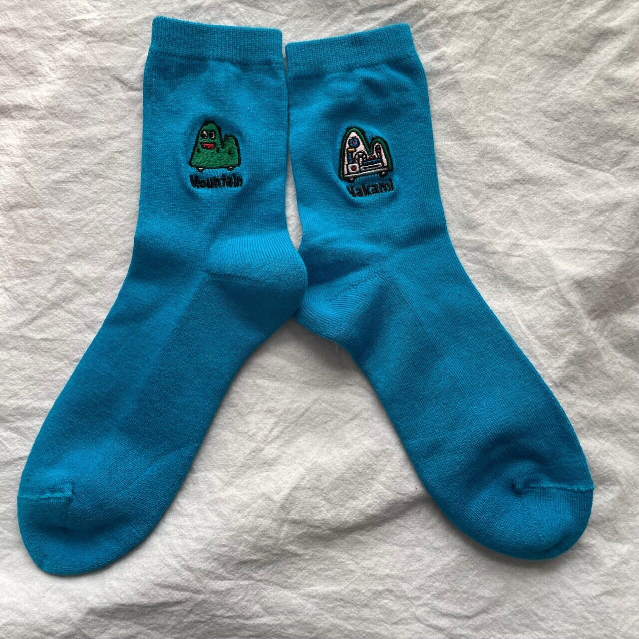 お笑い芸人でありデザイナーでもある、ネゴシックス氏がデザインした「Mountain」が刺繍されたアシンメトリーソックスをセレクトしました。