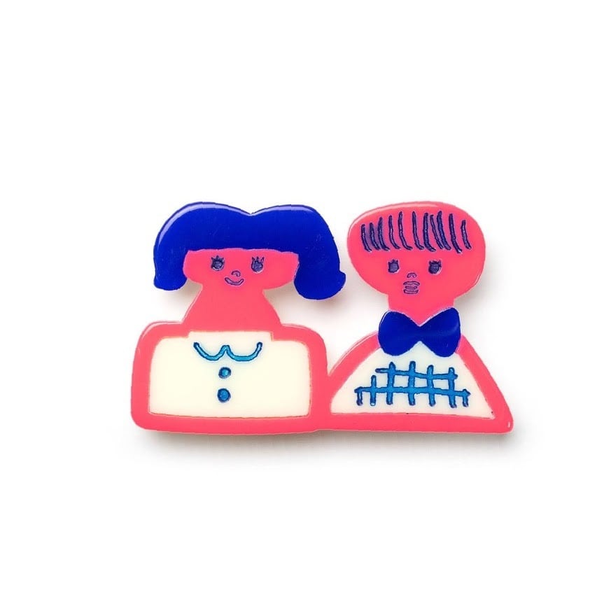 イラストレーターのミズノマサミさんが描く「Girls&Boys」と名付けられたほっこりかわいいブローチをセレクトしました。