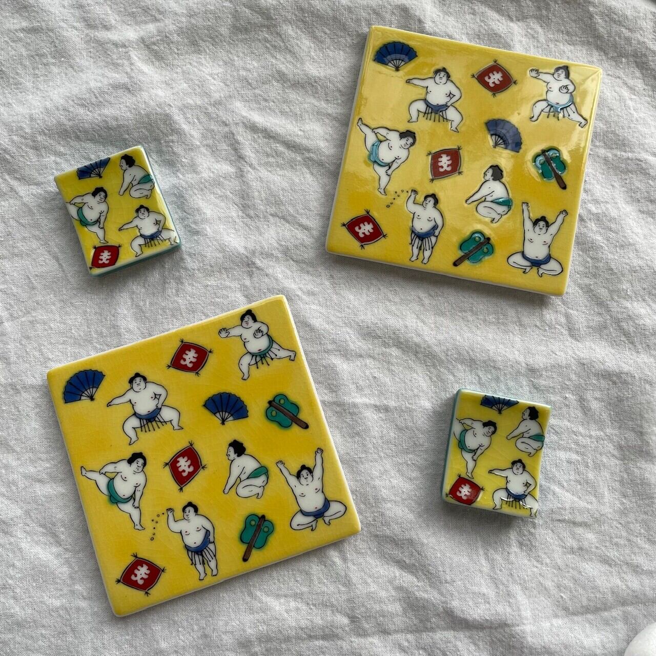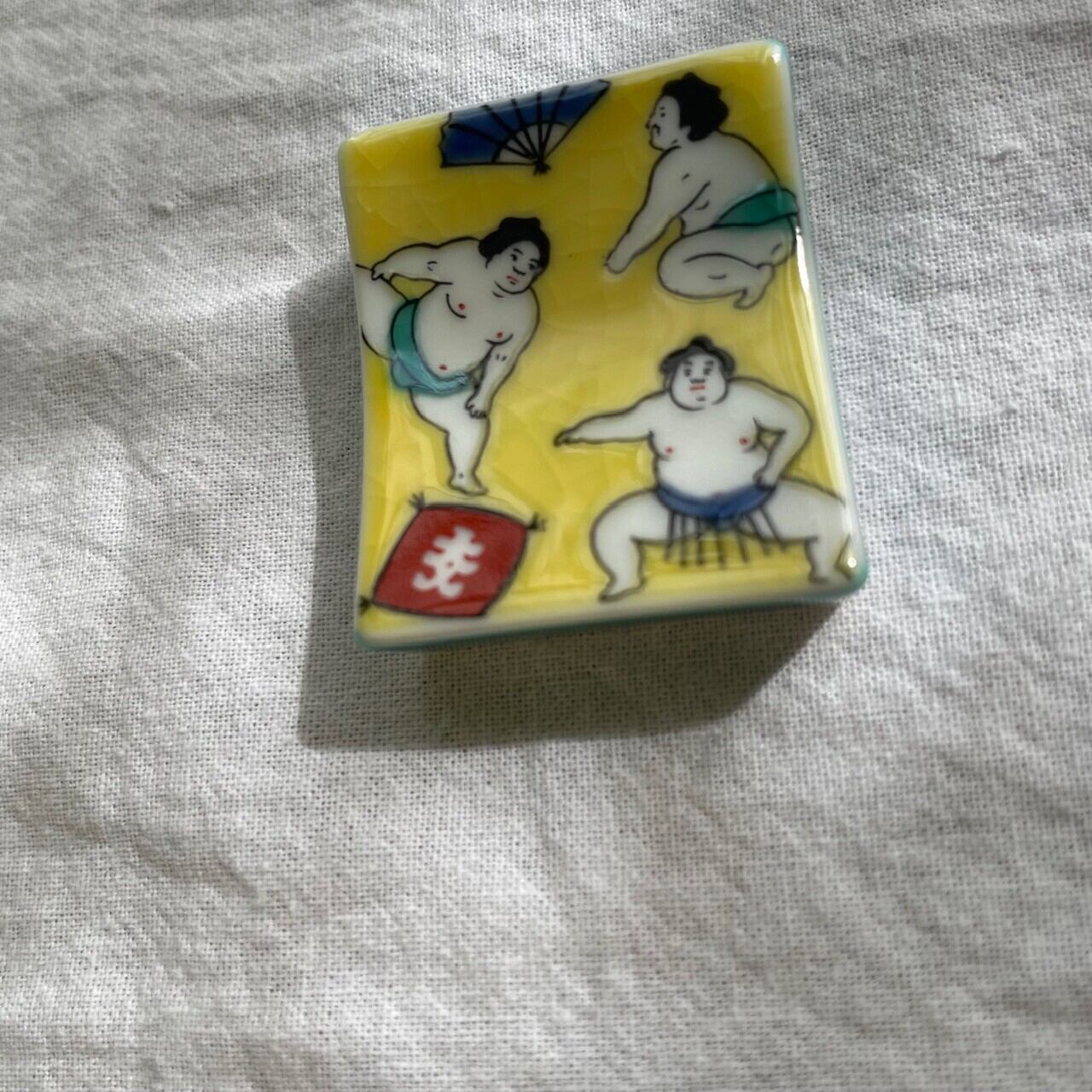 黄色にほっこりとしたお相撲さんが可愛い九谷焼の箸置きをセレクトしました。