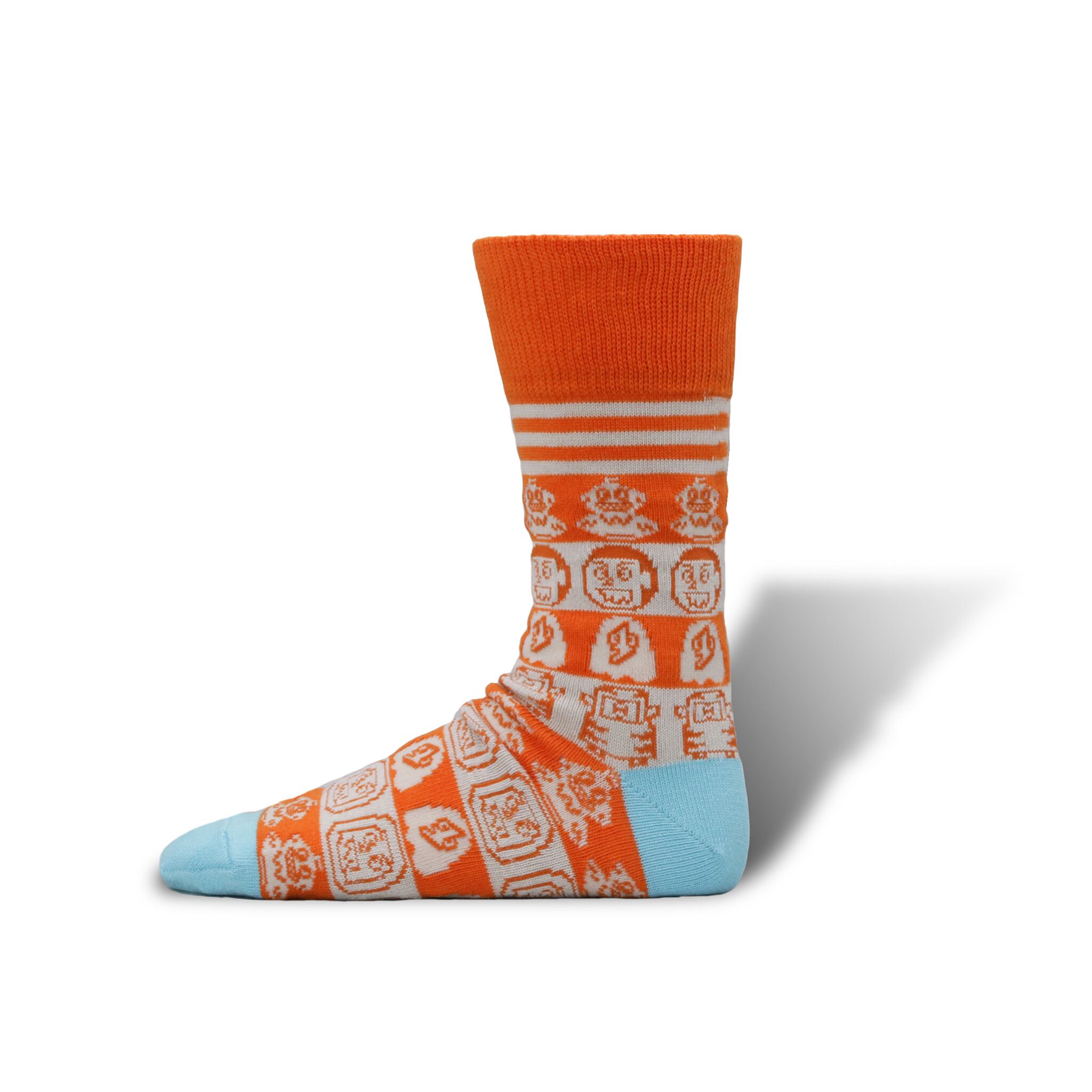 お笑い芸人でありデザイナーでもある、ネゴシックス氏が生み出しているネゴソックスのキャラクターをしましまに編み上げて作った靴下をセレクトしました。