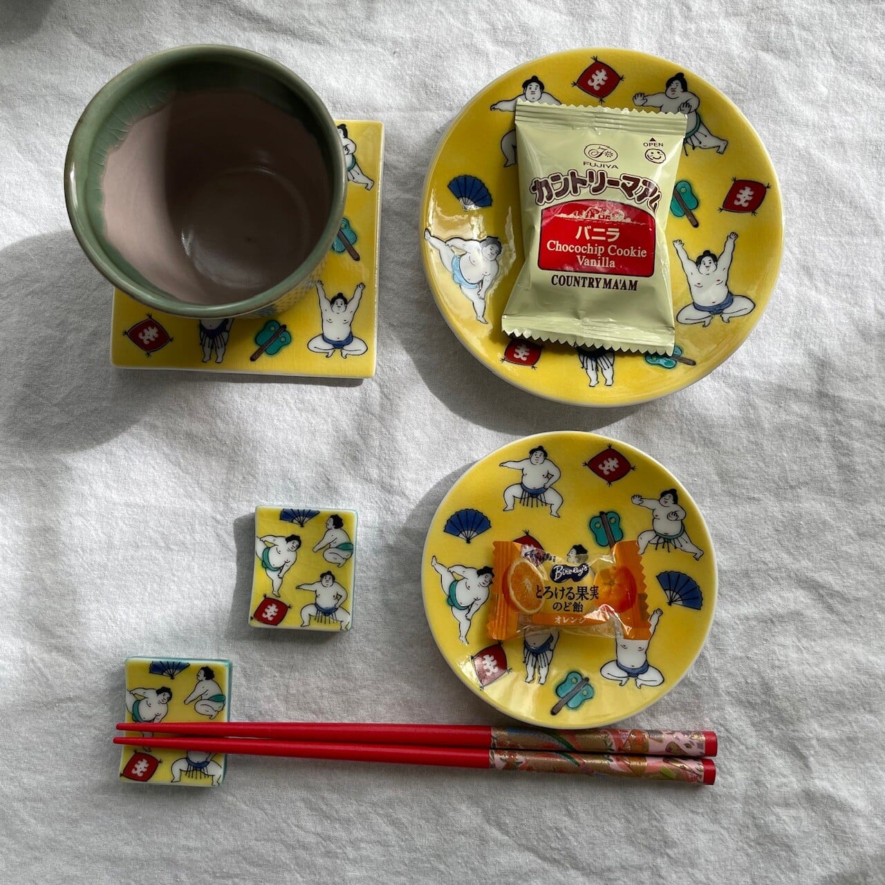 彩り鮮やかで美しい九谷焼の中でもひときわ可愛らしいなと思い、お相撲さんの小皿をセレクトしました。