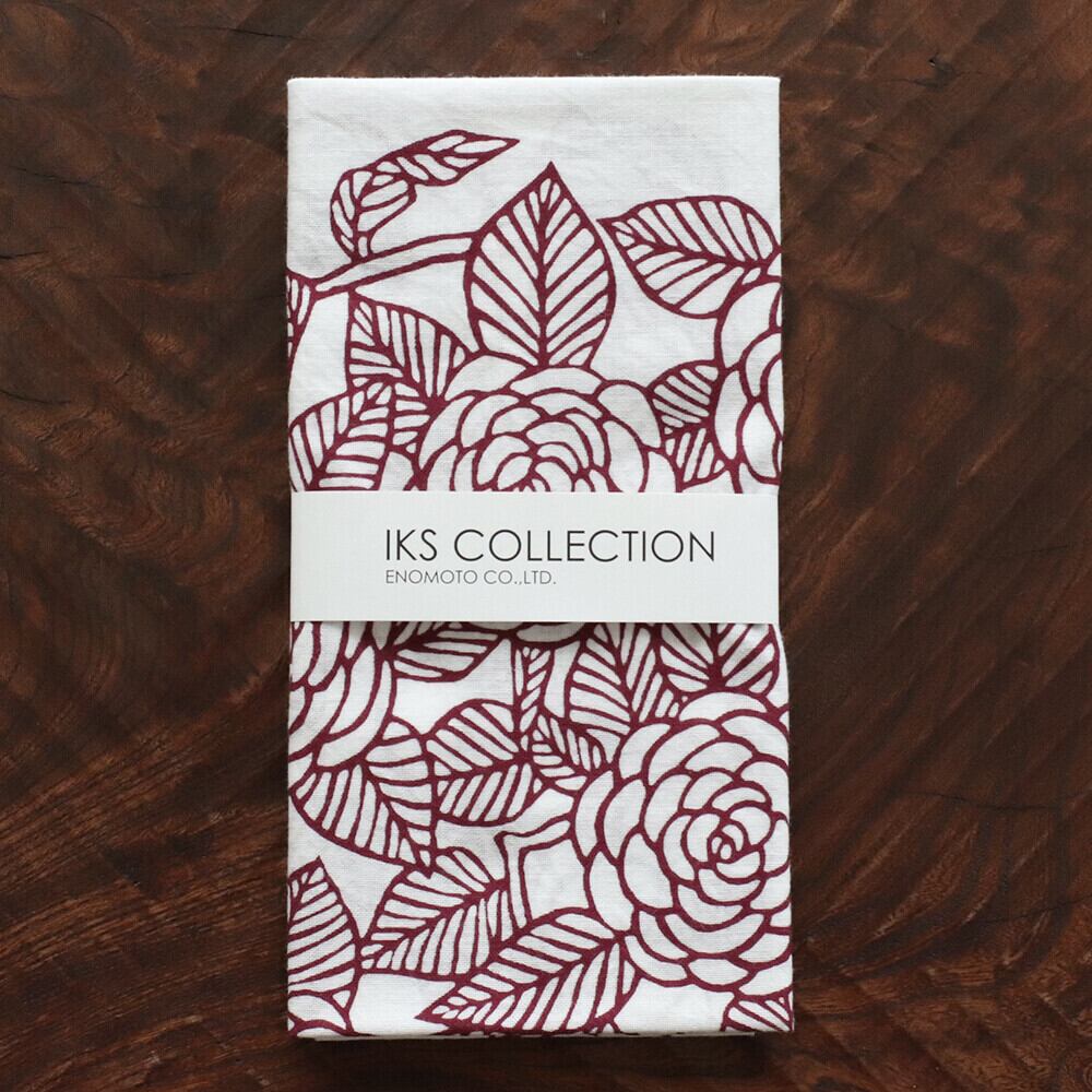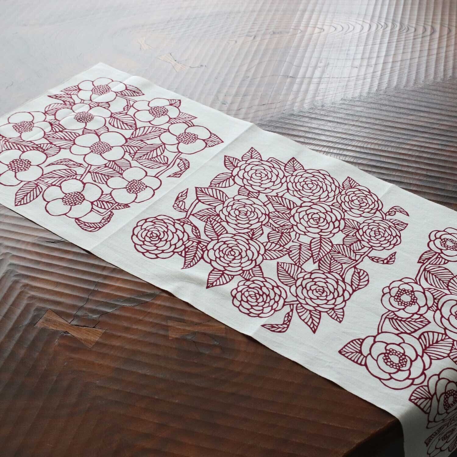 3種類の椿がそれぞれ描かれていてとても美しく、手ぬぐいとしてだけではなく、ストールなどに使ってもお洒落です。
