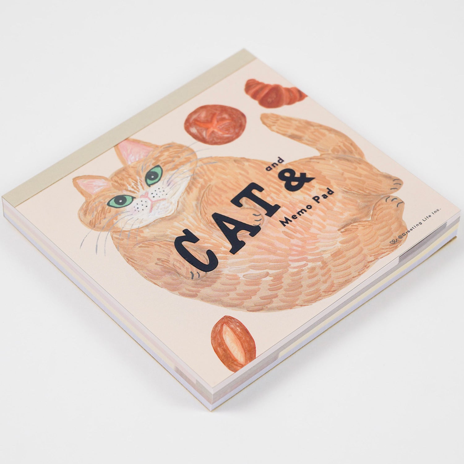 CAT&をテーマに、猫ちゃんとパン、テディベア、トイプードル、猫ちゃんたちと4柄デザインされたメモ帳です。