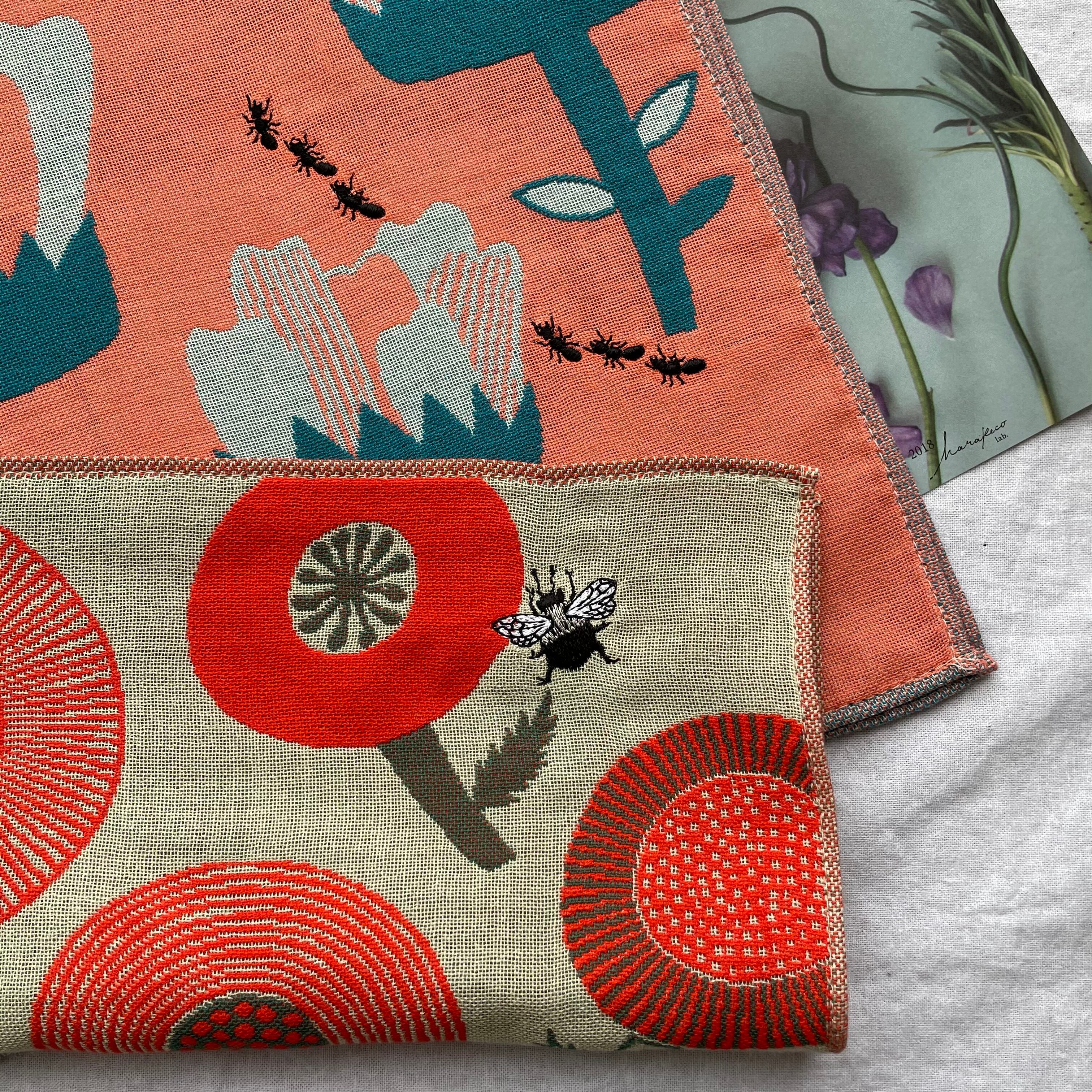 この花の蜜は美味しいのかしらとか様々な想像が膨らむハンカチです。
