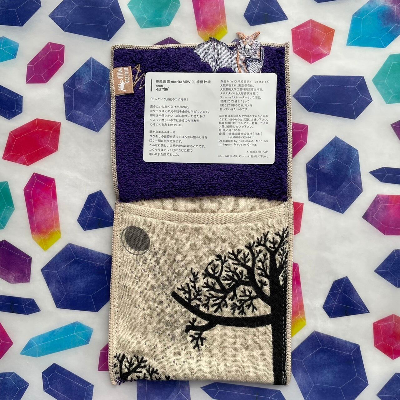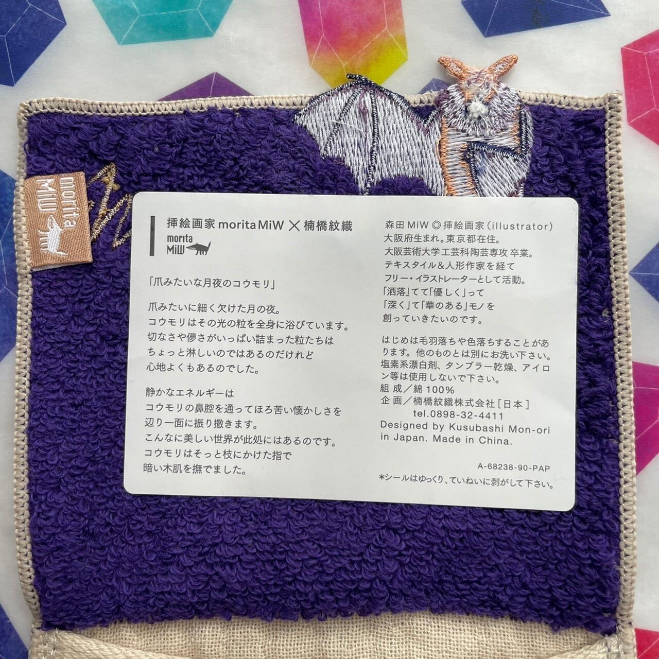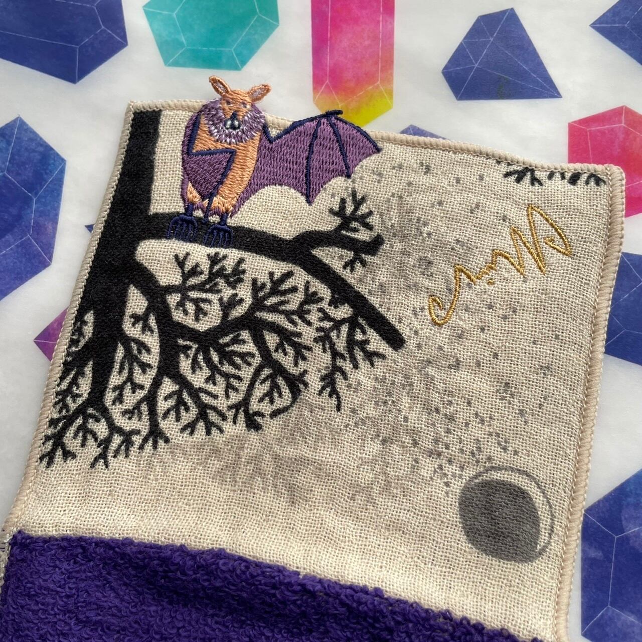 moritaMiW×楠橋紋織 ポーチハンカチ「爪みたいな月夜のコウモリ」森田MiW 刺繍 ポーチ ハンカチタオル