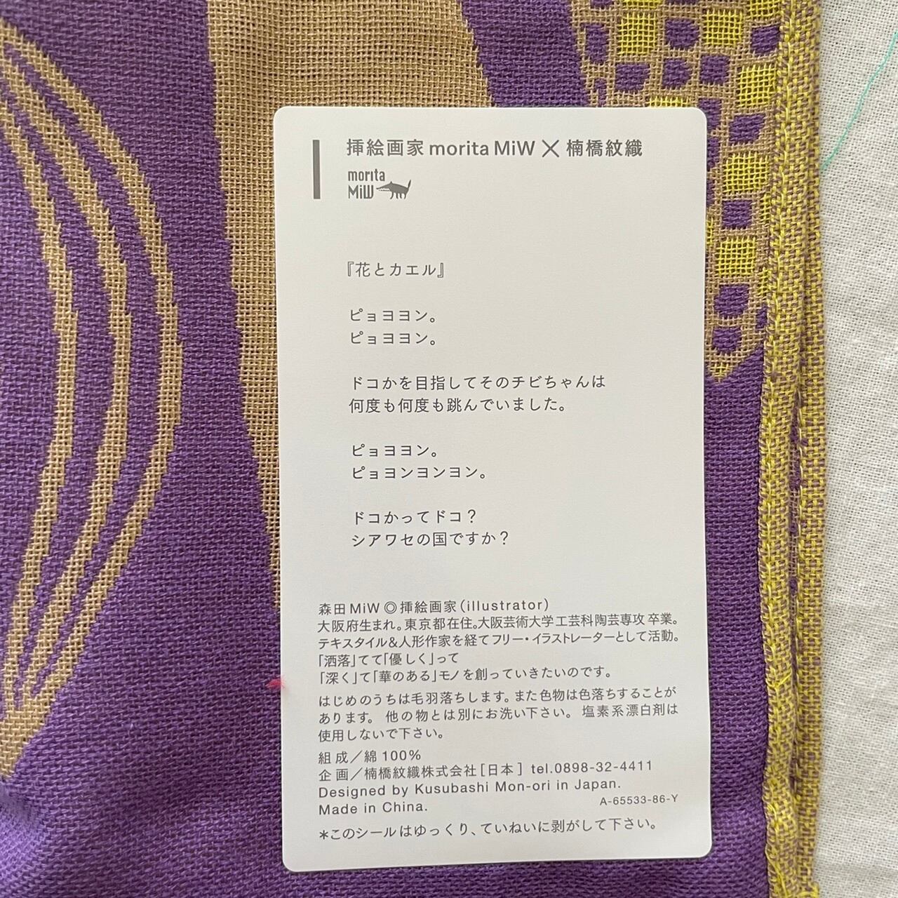 森田MiW 3重ガーゼハンカチ 花とカエル イエロー moritaMiW×楠橋紋織 刺繍 ハンカチ 花柄 プレゼント