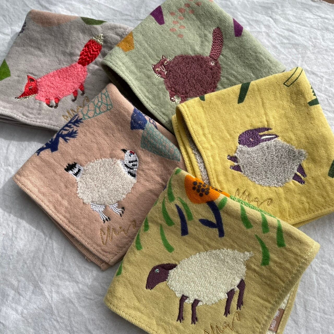 1枚の絵画としても作品のように楽しめる、森田MiWさんと楠橋紋織さんの品質が結集したモコモコドウブツハンカチ、クリスマスプレゼントやモコモコほっこり癒されたい方にお勧めの1枚です。