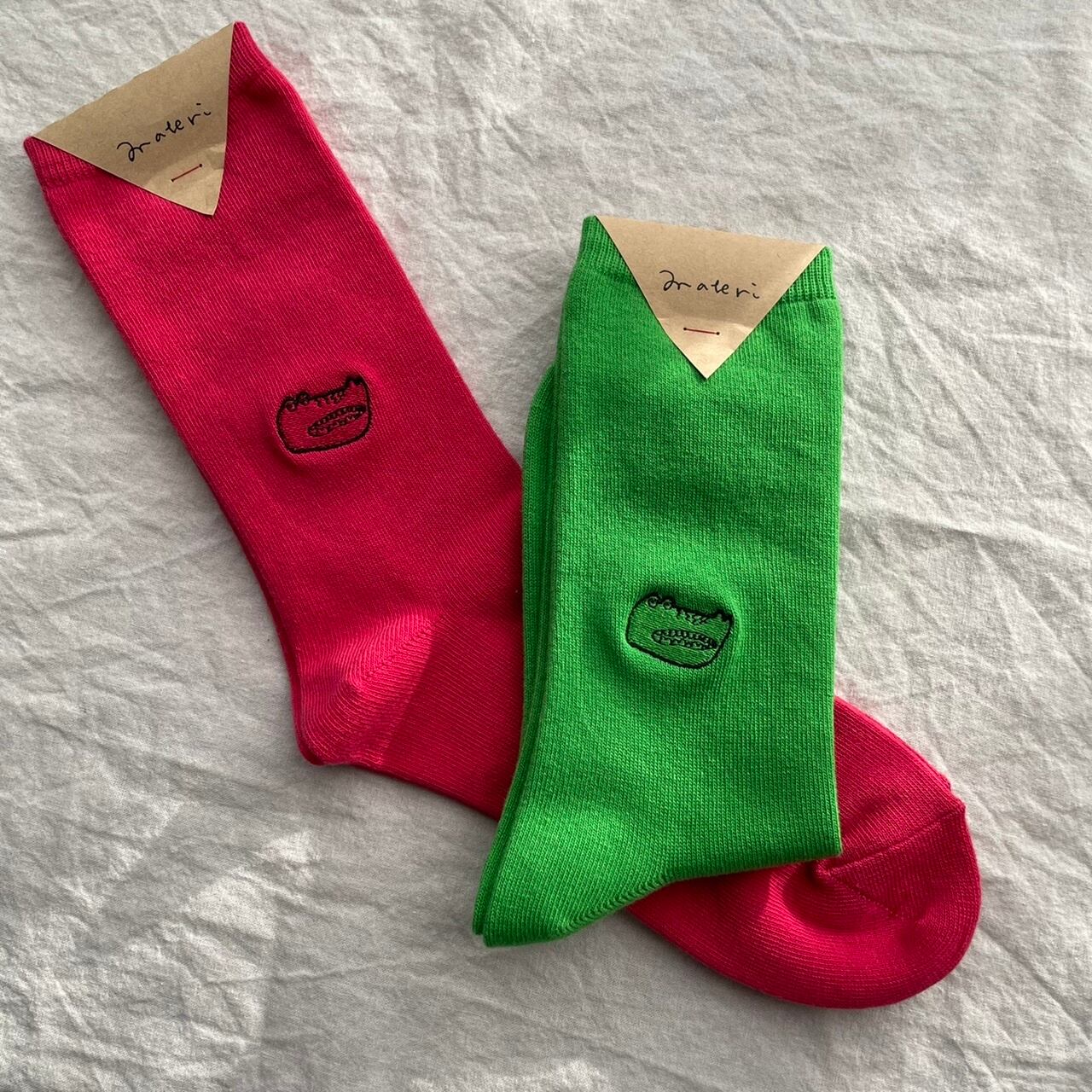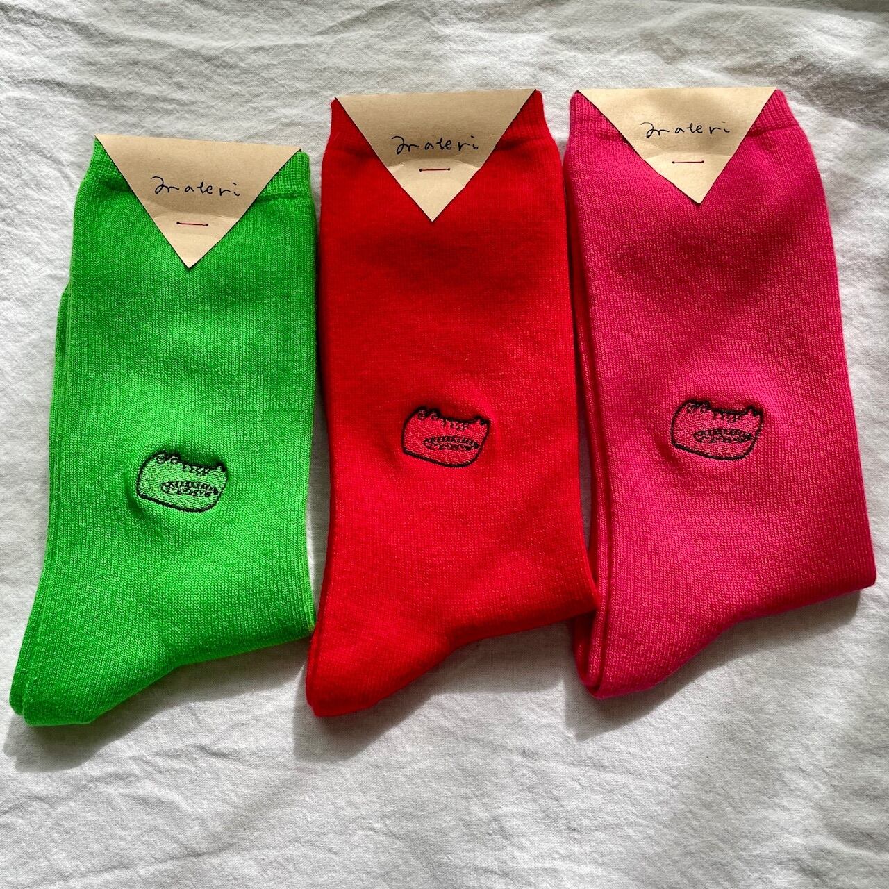 ポップで明るいワニの靴下 ワニ 靴下 ミズノマサミ ソックス ピンク 赤 グリーン イエロー プレゼントにも