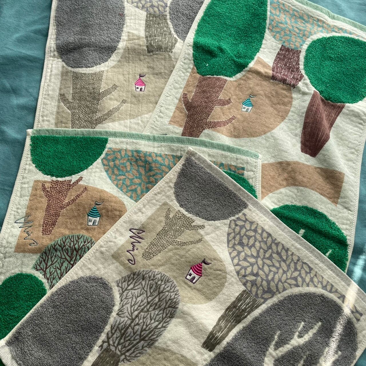 「森のわが家」と名付けられたこのタオル、最初はグリーンだけを取り扱っていたのですが、見ているうちにだんだんグレーも欲しくなってしまい今回入荷しました。