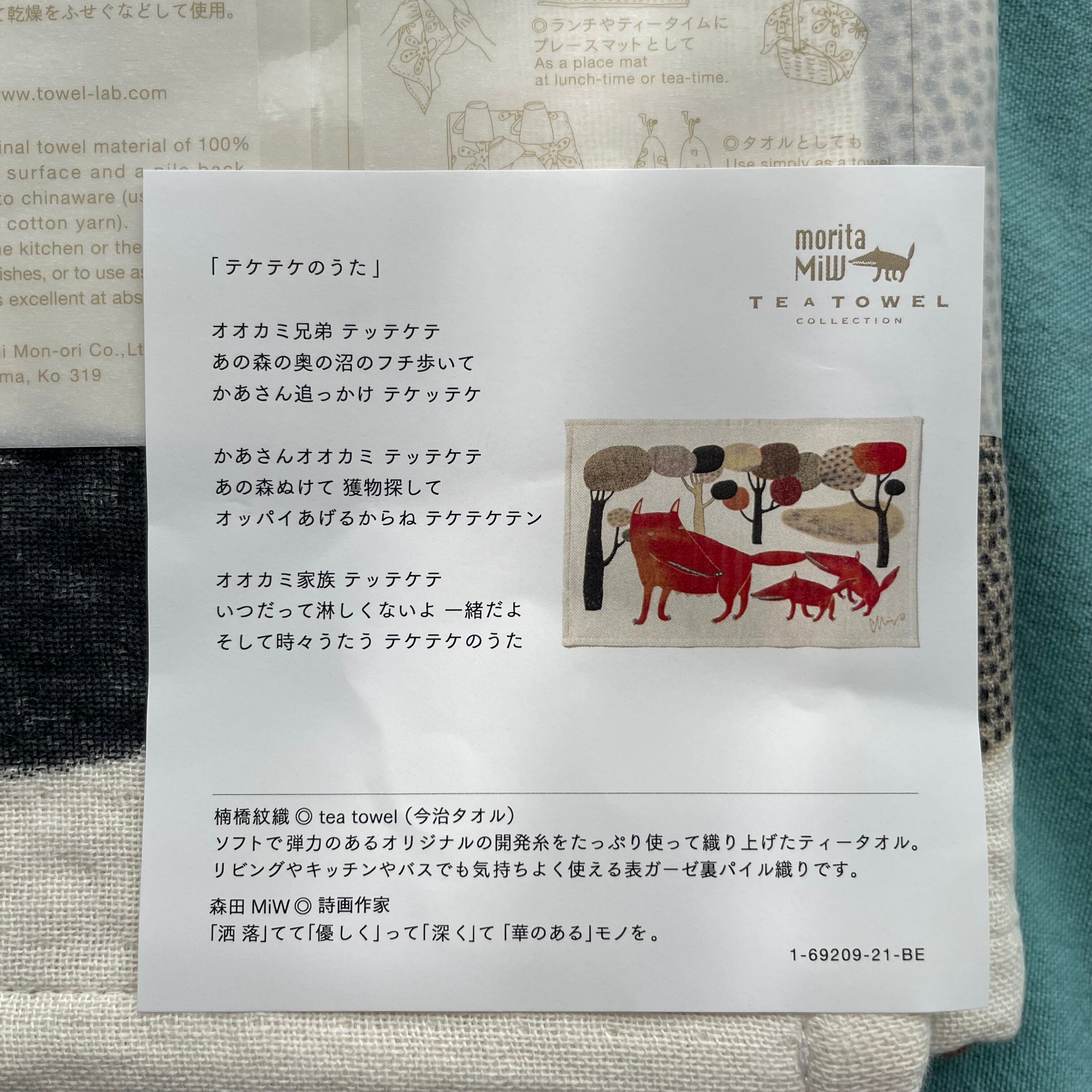 森田MiW タオル moritaMiW×楠橋紋織 ティータオル テケテケのうた オオカミ 狼 タオル 今治タオル 出産祝い 枕カバー ランチョンマット