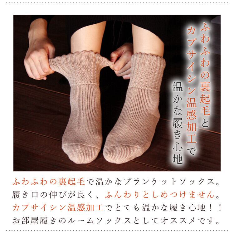 もこもこあったか起毛のルームソックス ブランケットソックス 温感靴下 冷え対策 冷え症 プレゼント