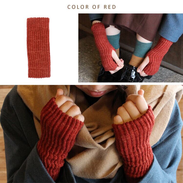 赤が綺麗なバルキーウールのふわふわアームウォーマー 冬小物 冷え対策 シルク アームカバー クリスマス