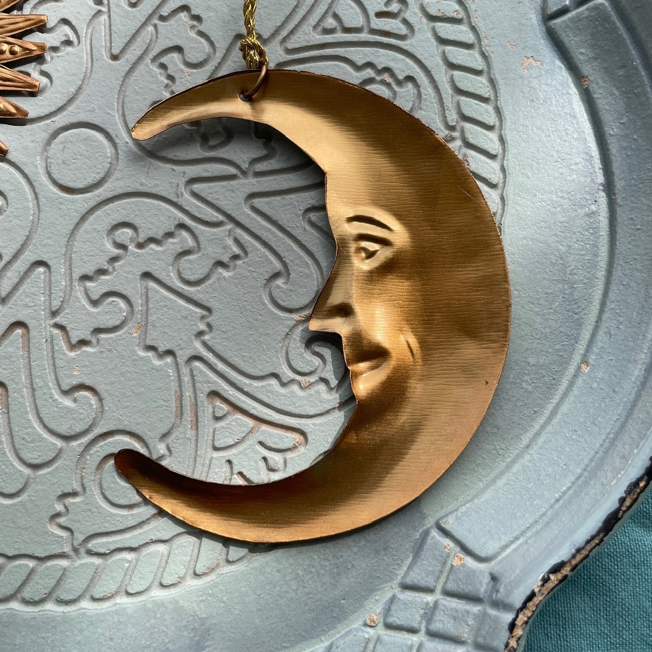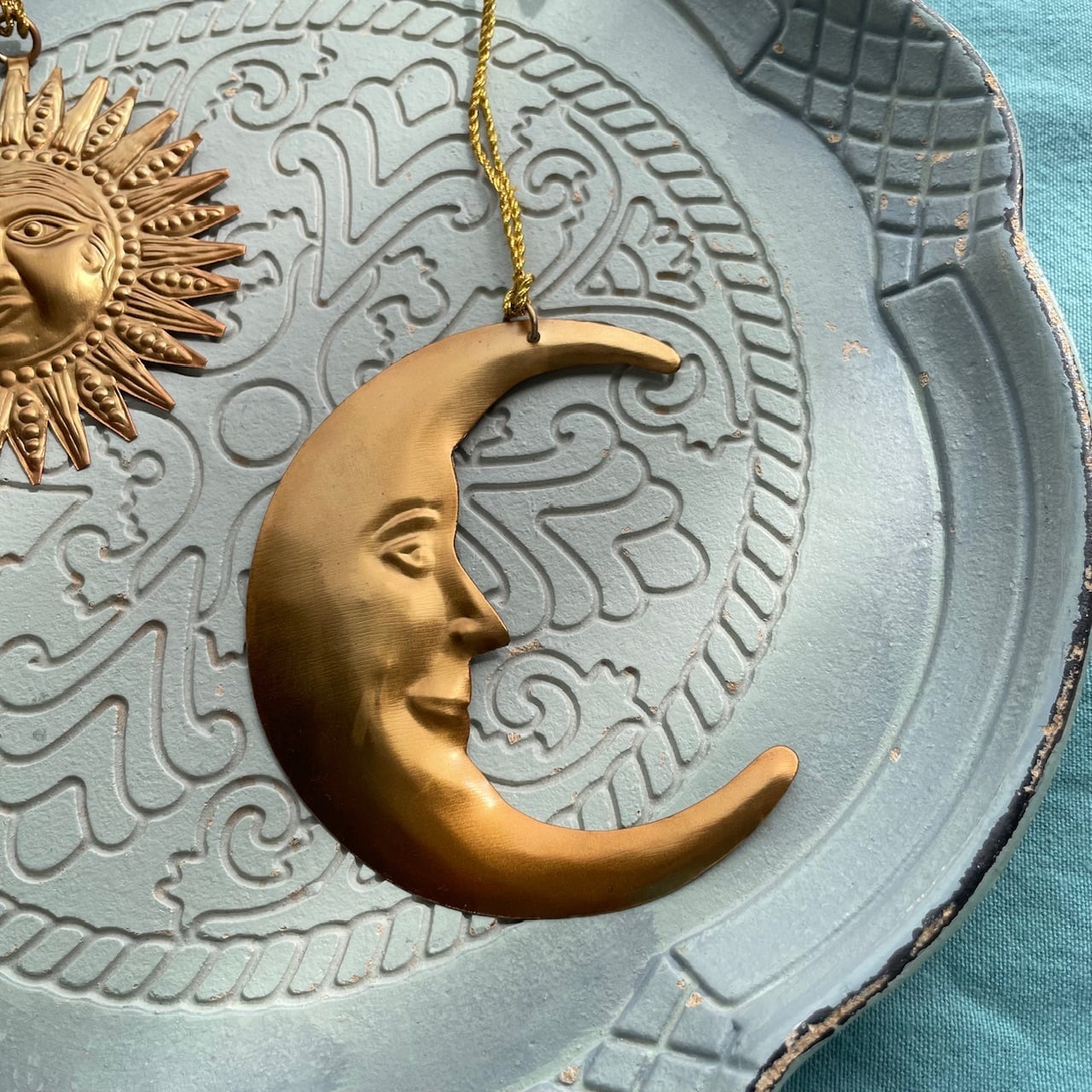 細かい型押しで作ったリアルなお顔が大人っぽく、シックな風合いの三日月型オーナメント。